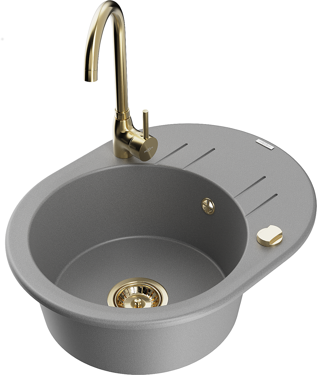 Mexen Kevin lavello in granito 1-vasca con sgocciolatoio e rubinetto da cucina Telma, grigio - 6517-71-670200-50
