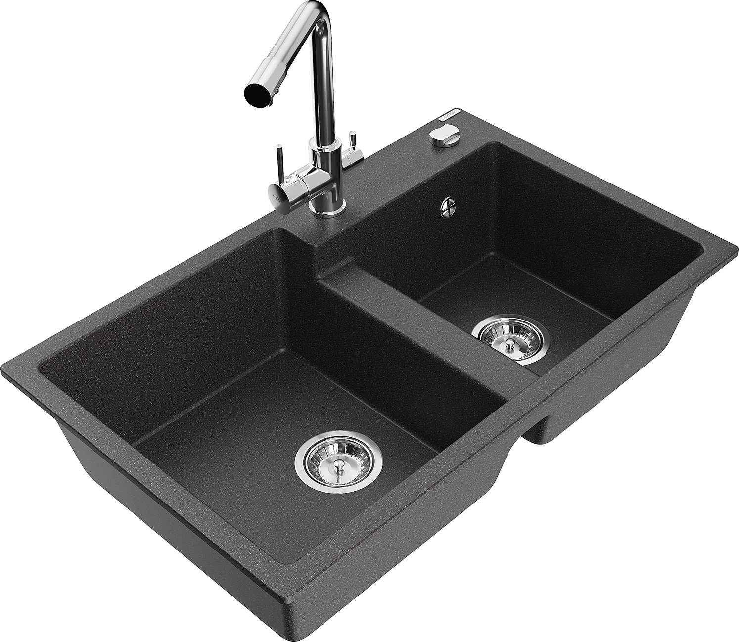 Mexen Tomas lavello in granito a 2 vasche con rubinetto cucina Duero, nero maculato - 6516-76-671600-00