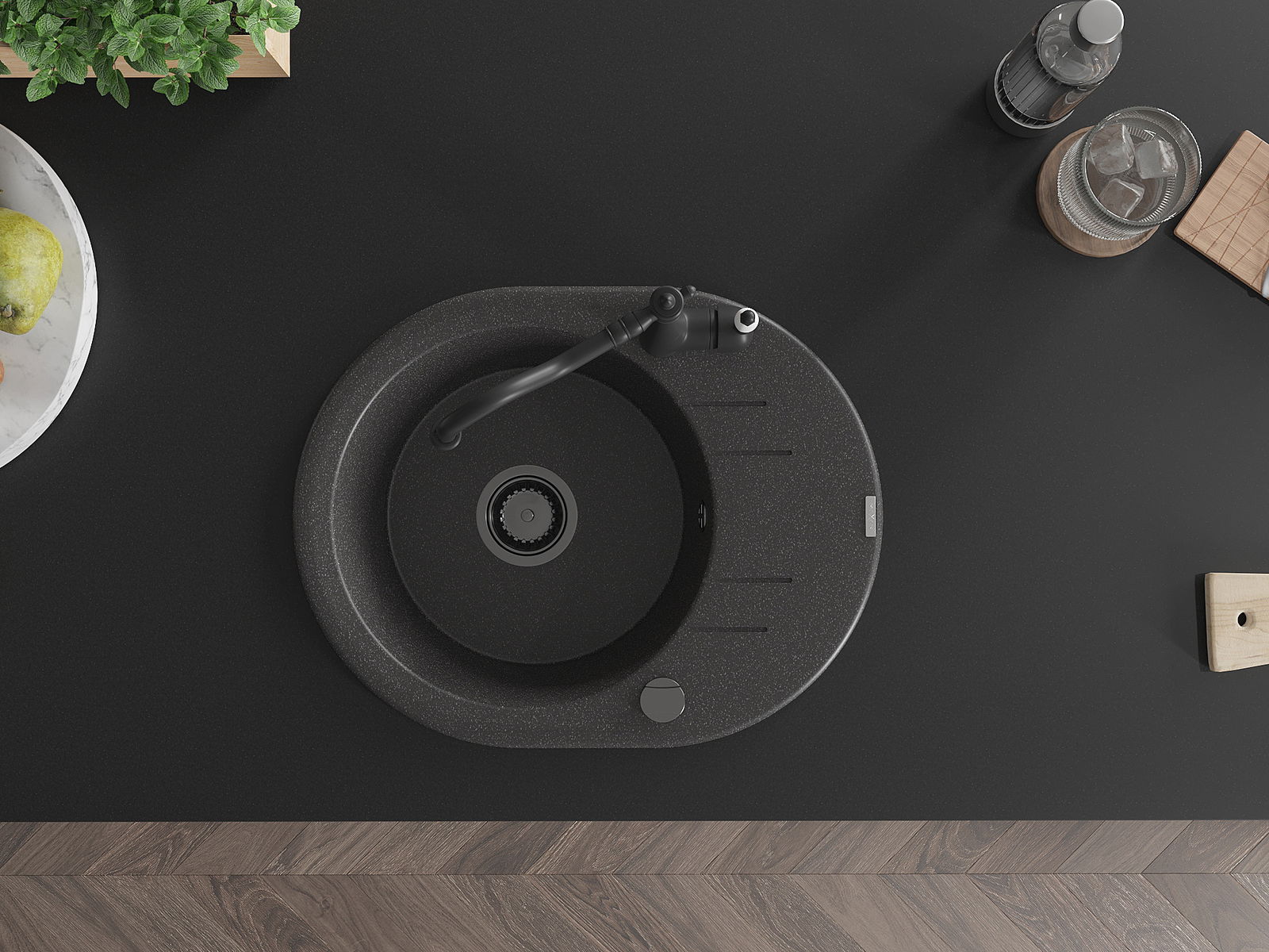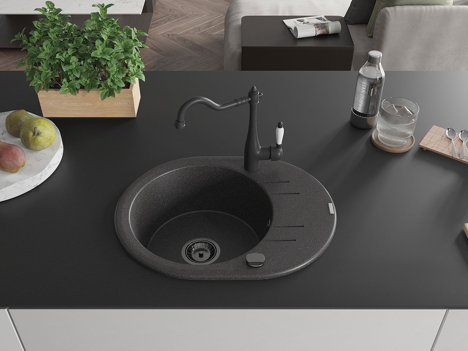 Il lavello è realizzato in granito di alta qualità. Rappresenta un complemento elegante e, soprattutto, pratico per ogni cucina, indipendentemente dal suo stile. L'alta qualità e la durata del granito garantiscono un utilizzo che dura per molti anni.