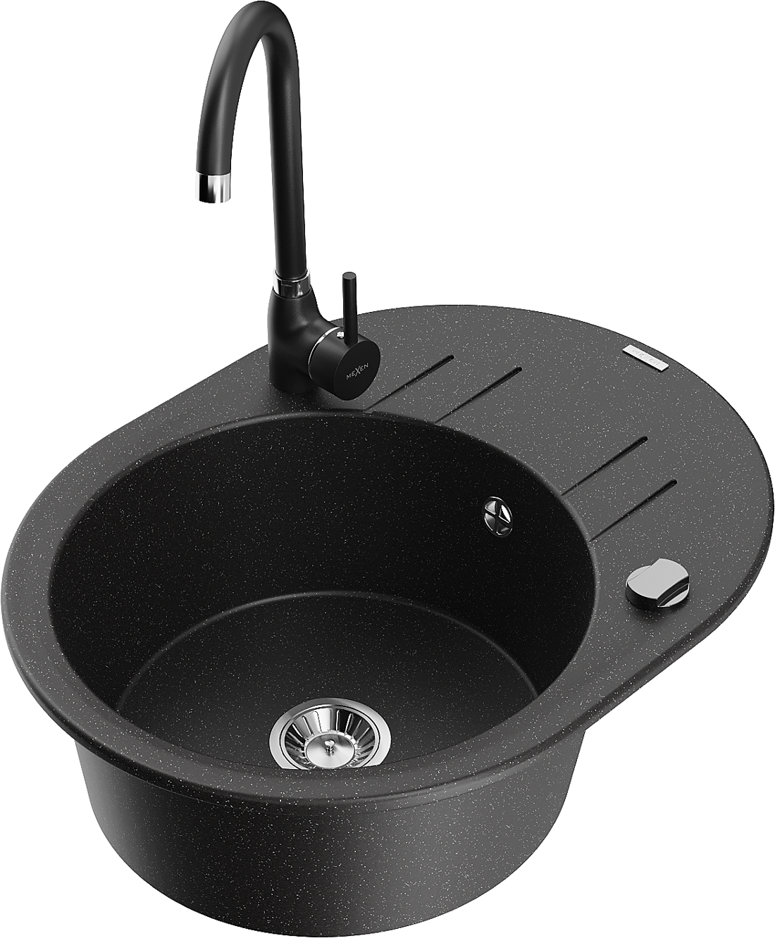 Mexen Kevin lavello in granito 1 vasca con gocciolatoio e miscelatore cucina Telma, nero/argento metallizzato