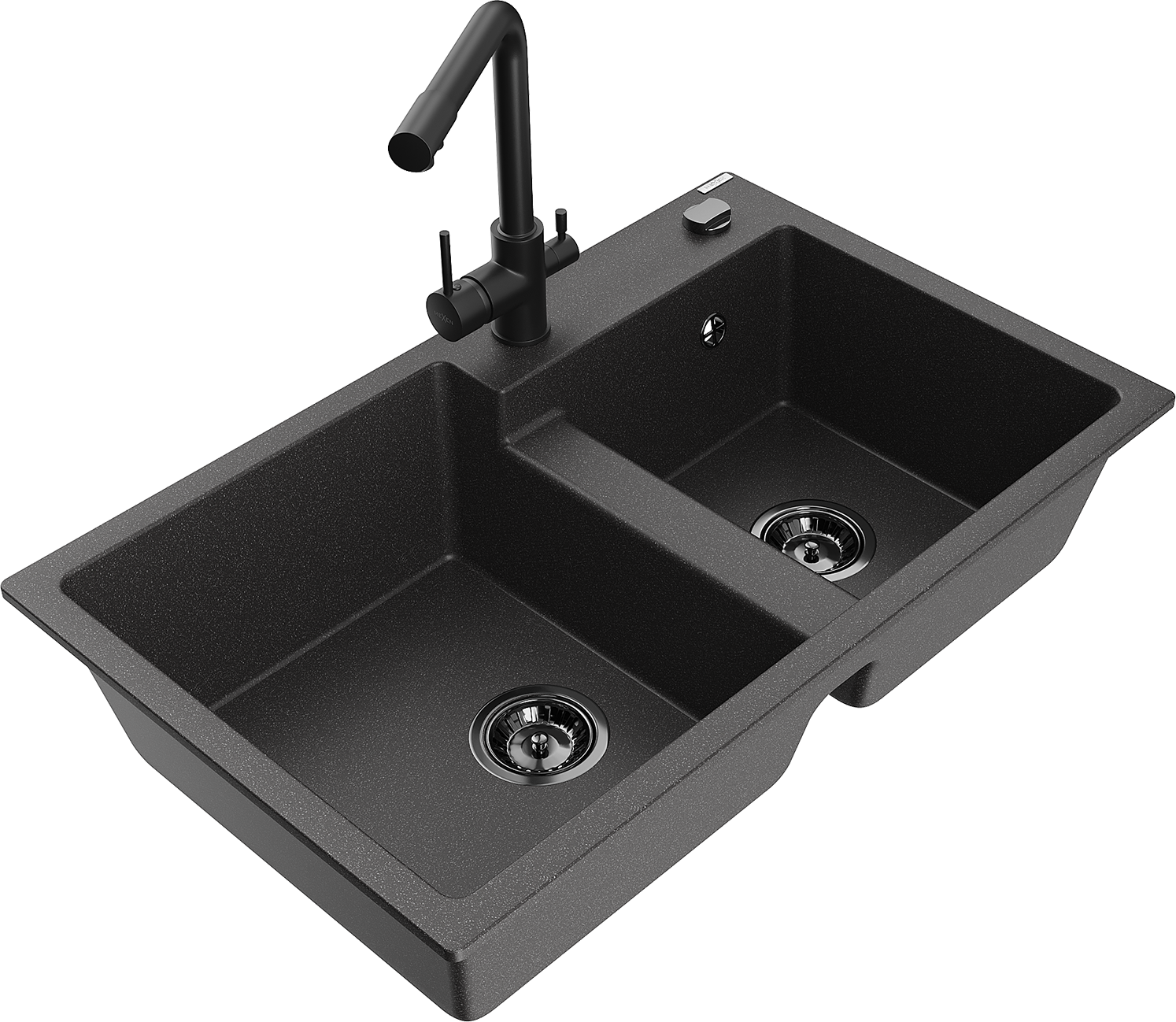 Mexen Tomas lavello da cucina in granito a 2 vasche con rubinetto Duero, nero puntinato - 6516-76-671600-70-B