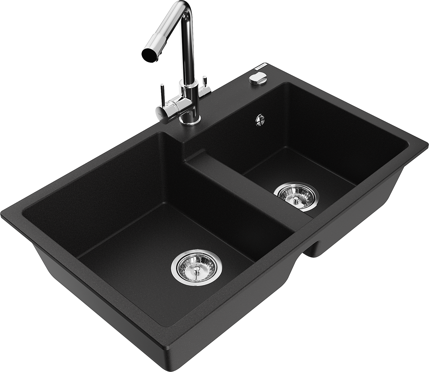 Mexen Tomas lavello in granito a 2 vasche con rubinetto da cucina Duero, nero - 6516-77-671600-00