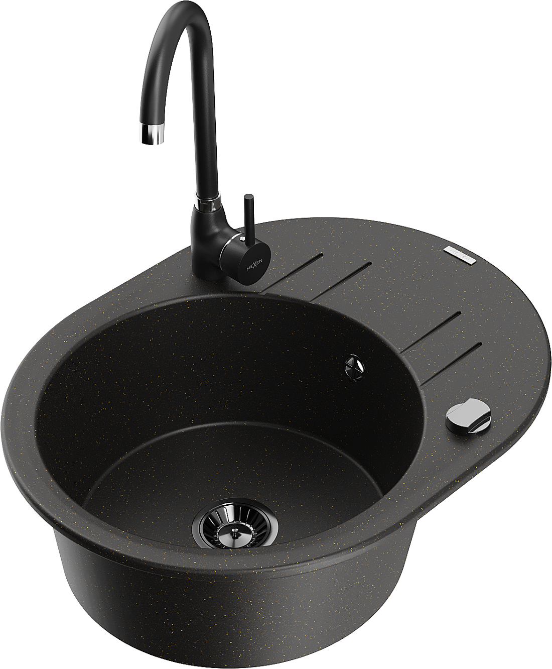 Mexen Kevin lavello in granito a 1 vasca con scolapiatti e rubinetto da cucina Telma, nero/oro metallizzato