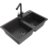 Mexen Tomas lavello da cucina in granito a 2 vasche con miscelatore Duero, nero - 6516-77-671600-70-B