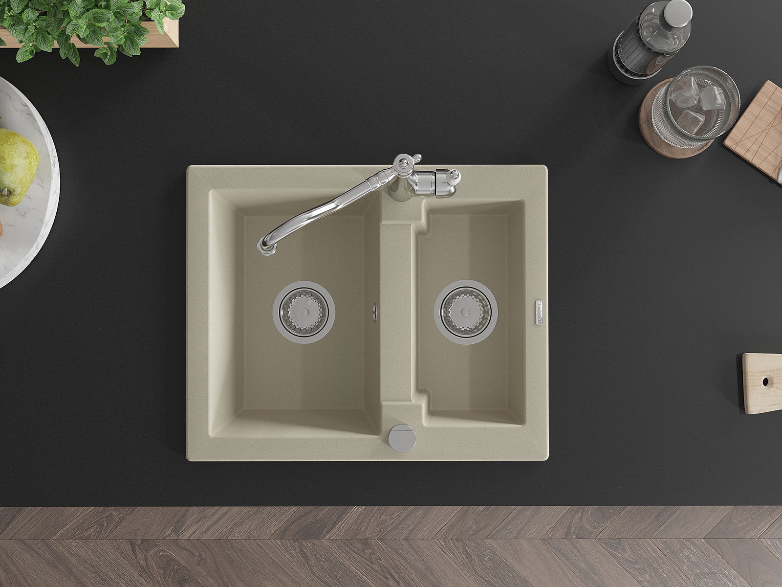 Il lavello è realizzato in granito di alta qualità. Rappresenta un complemento elegante e, soprattutto, pratico per ogni cucina, indipendentemente dal suo stile. L'alta qualità e la durata del granito garantiscono un utilizzo che dura per molti anni.