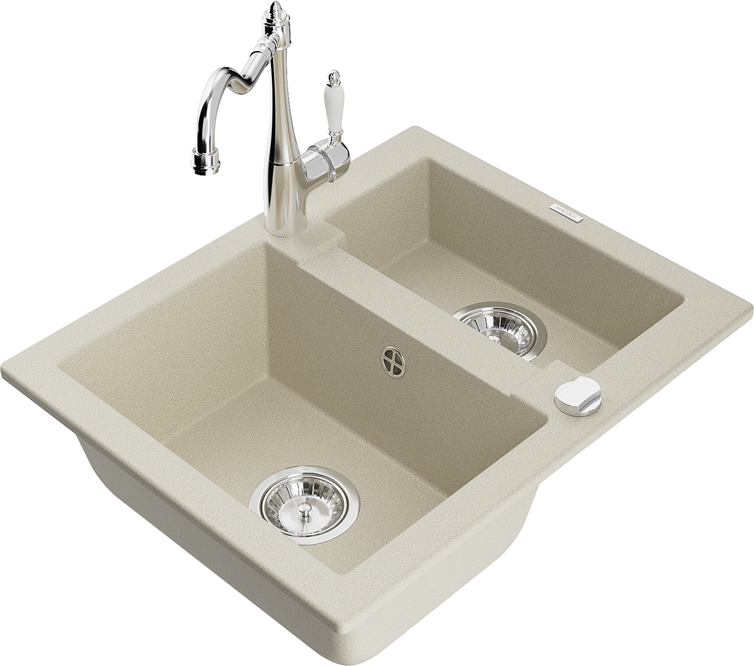 Mexen Carlos lavello in granito 1,5 vasche con rubinetto da cucina Carla, beige - 6518-69-670700-00