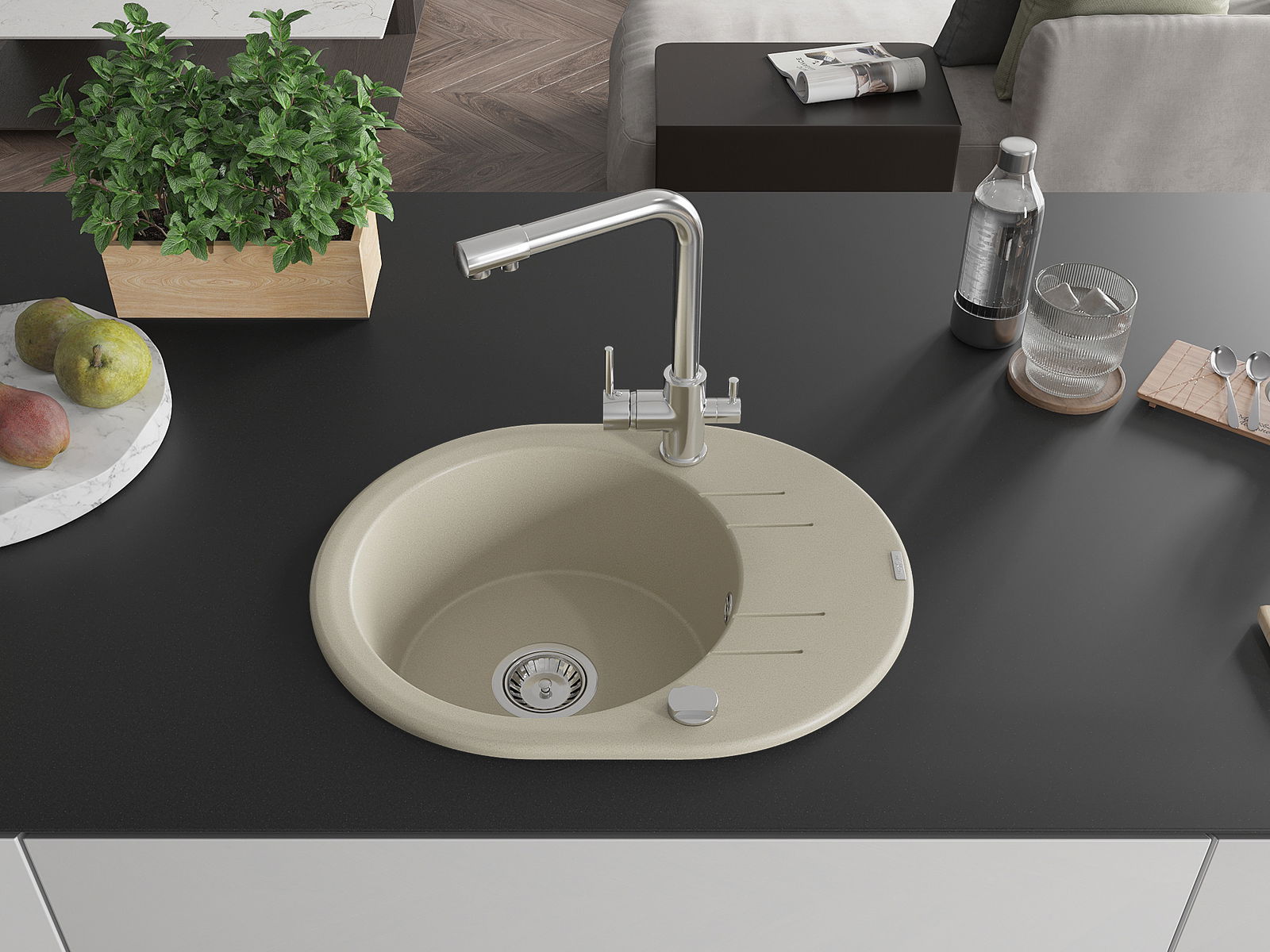 Il lavello è realizzato in granito di alta qualità. Rappresenta un complemento elegante e, soprattutto, pratico per ogni cucina, indipendentemente dal suo stile. L'alta qualità e la durata del granito garantiscono un utilizzo che dura per molti anni.
