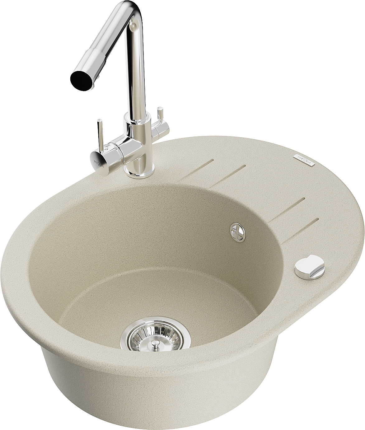 Mexen Kevin lavello da cucina in granito a 1 vasca con scolapiatti e rubinetto da cucina Duero, beige - 6517-69-671600-00