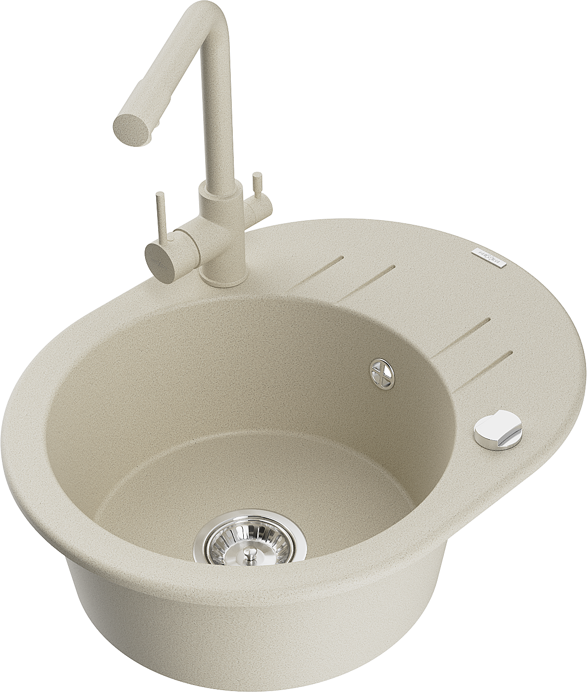 Mexen Kevin lavello in granito 1 vasca con sgocciolatoio e rubinetto cucina Duero, beige - 6517-69-671600-69