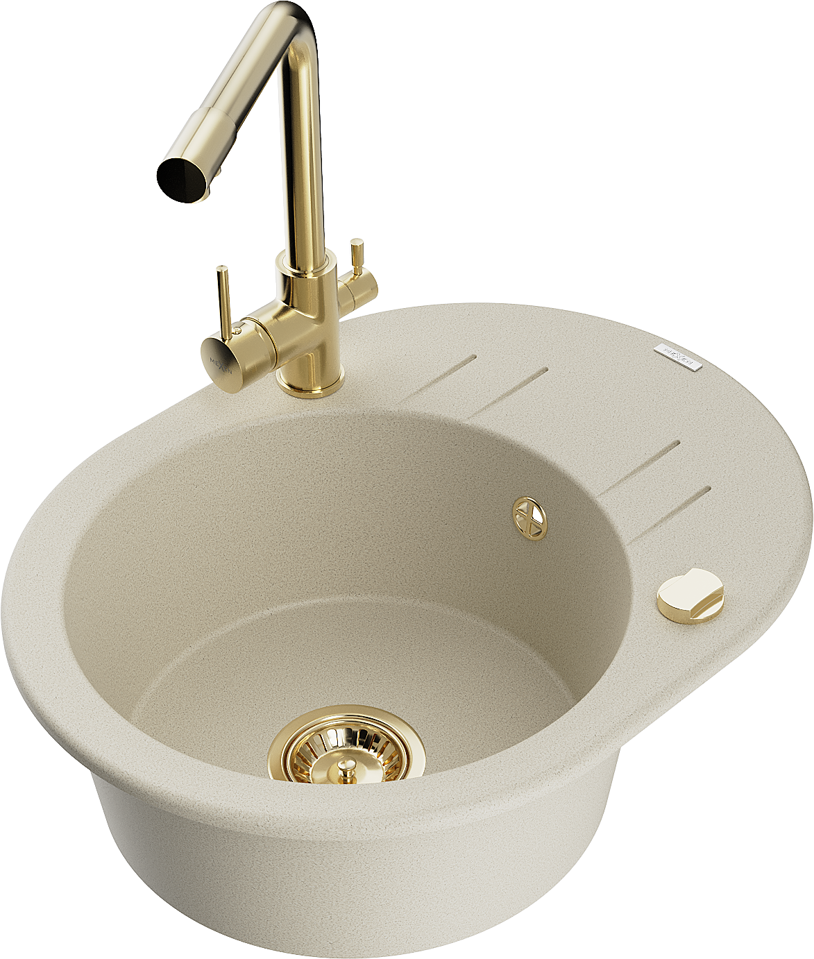 Mexen Kevin lavello in granito a 1 vasca con sgocciolatoio e rubinetto cucina Duero, beige - 6517-69-671600-50