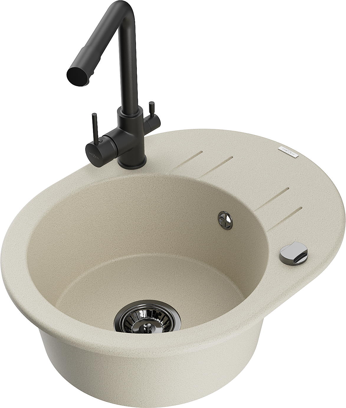 Mexen Kevin lavello da cucina in granito 1 vasca con gocciolatoio e miscelatore da cucina Duero, beige - 6517-69-671600-70