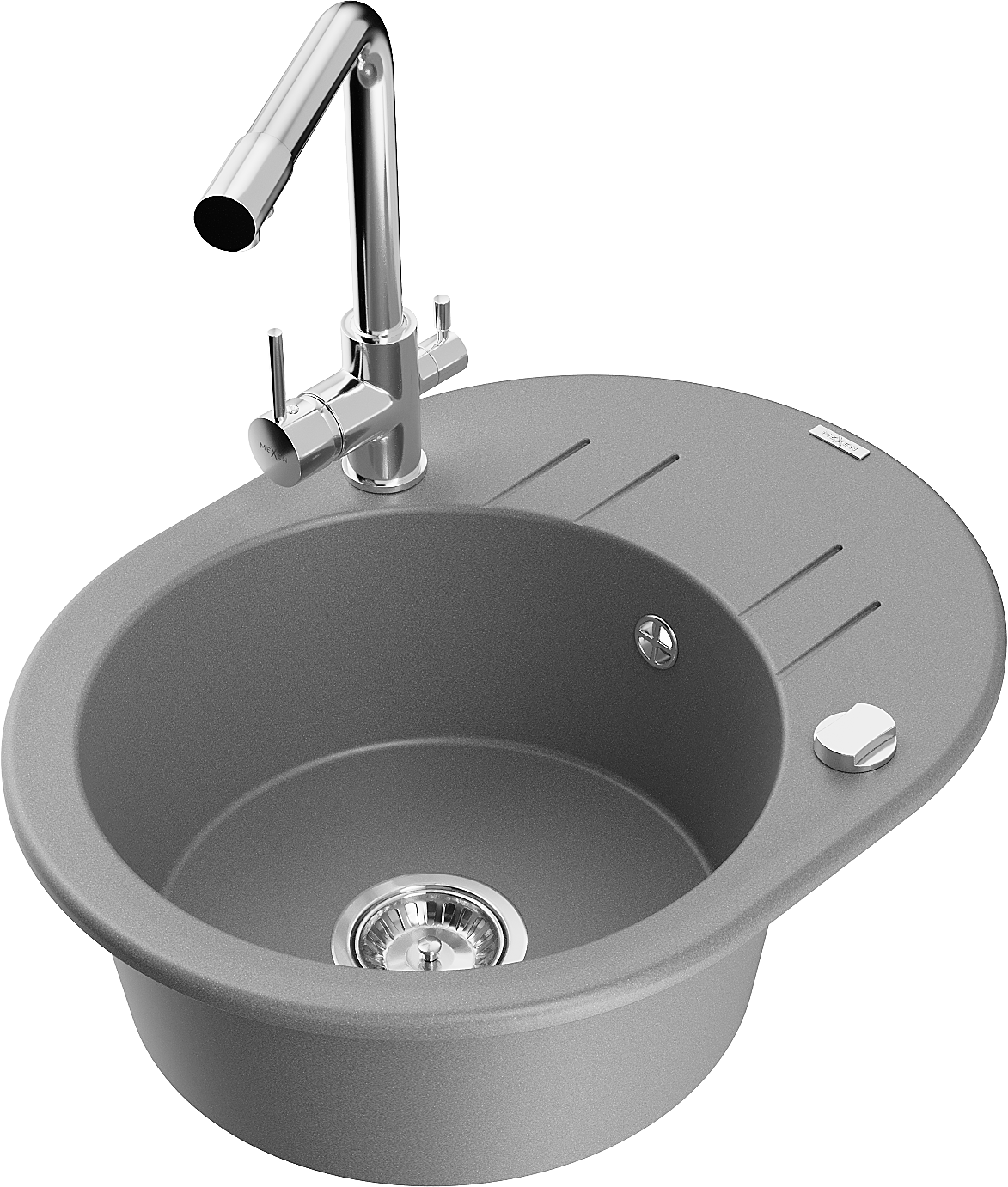 Mexen Kevin lavello da cucina in granito a 1 vasca con sgocciolatoio e miscelatore Duero, grigio - 6517-71-671600-00