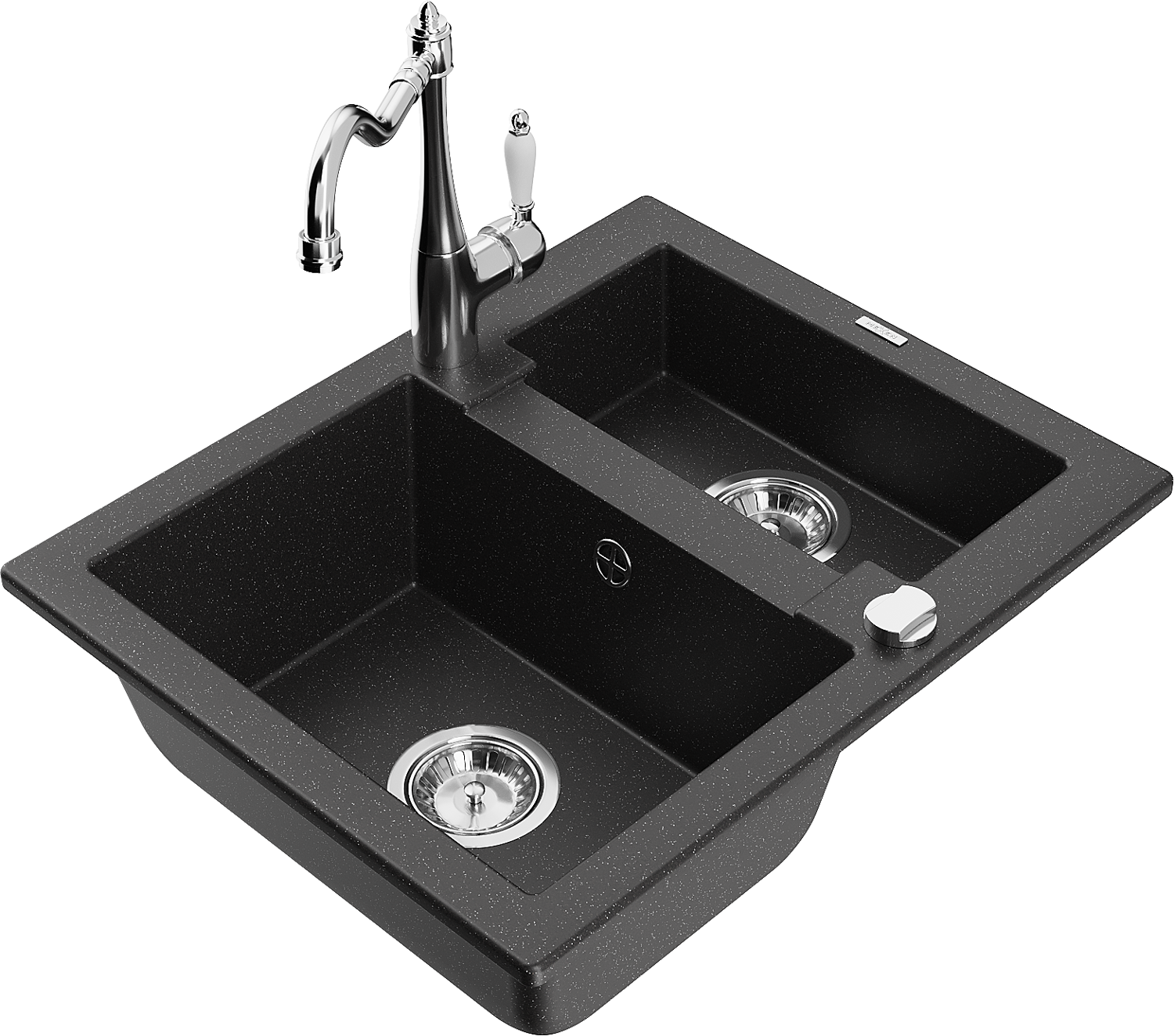 Mexen Carlos lavello in granito 1,5 vasche con rubinetto cucina Carla, nero/metallizzato argento - 6518-73-670700-00