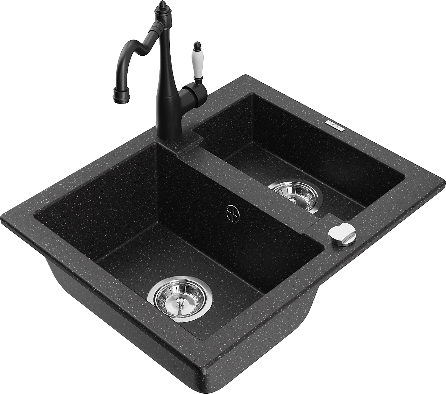 Mexen Carlos lavello in granito 1,5 vasche con rubinetto da cucina Carla, nero/argento metallizzato - 6518-73-670700-70