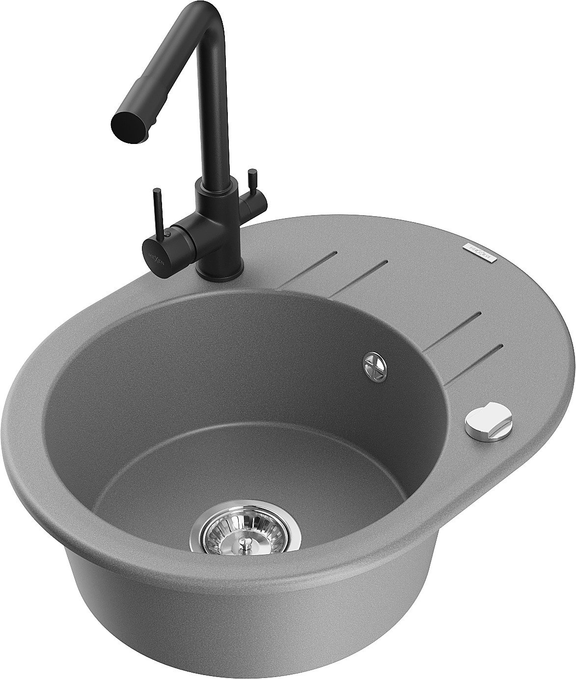 Mexen Kevin lavello in granito 1-vasca con gocciolatoio e rubinetto da cucina Duero, grigio - 6517-71-671600-70