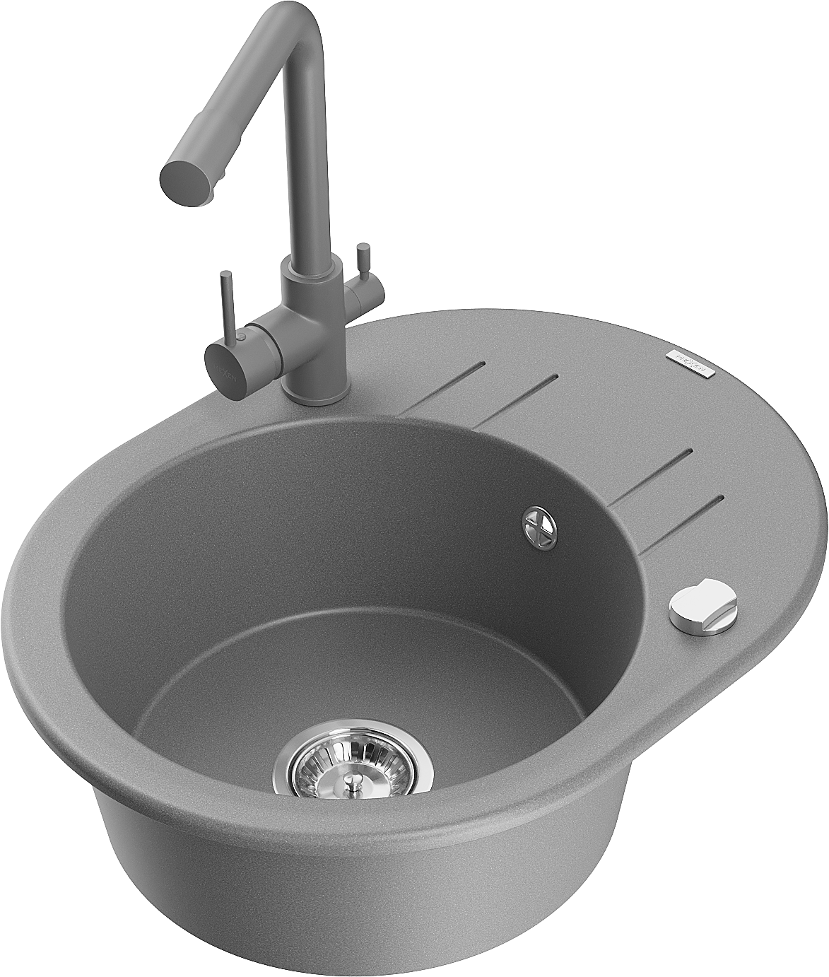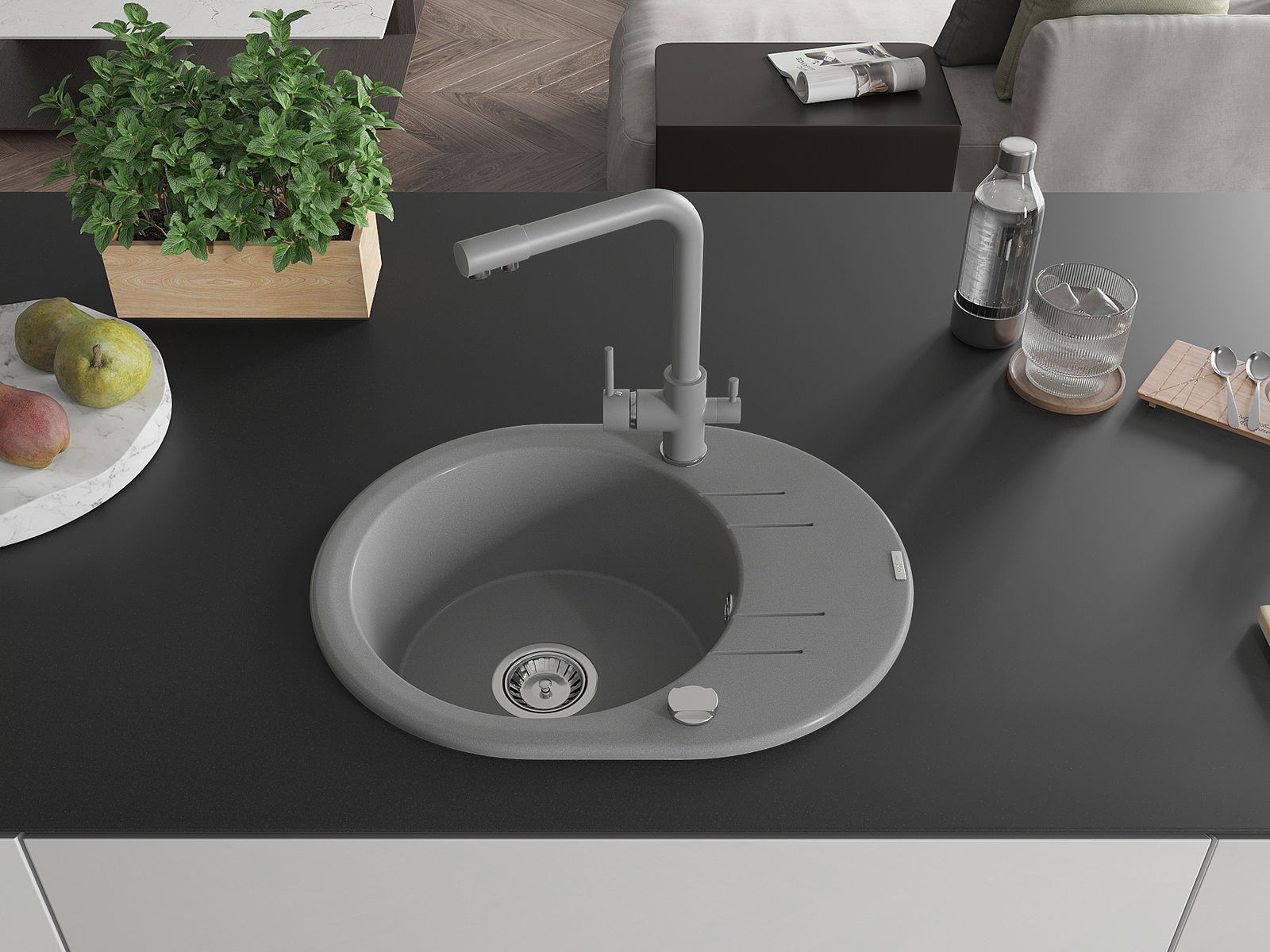 Mexen Kevin lavello in granito a 1 vasca con sgocciolatoio e rubinetto da cucina Duero, grigio - 6517-71-671600-71