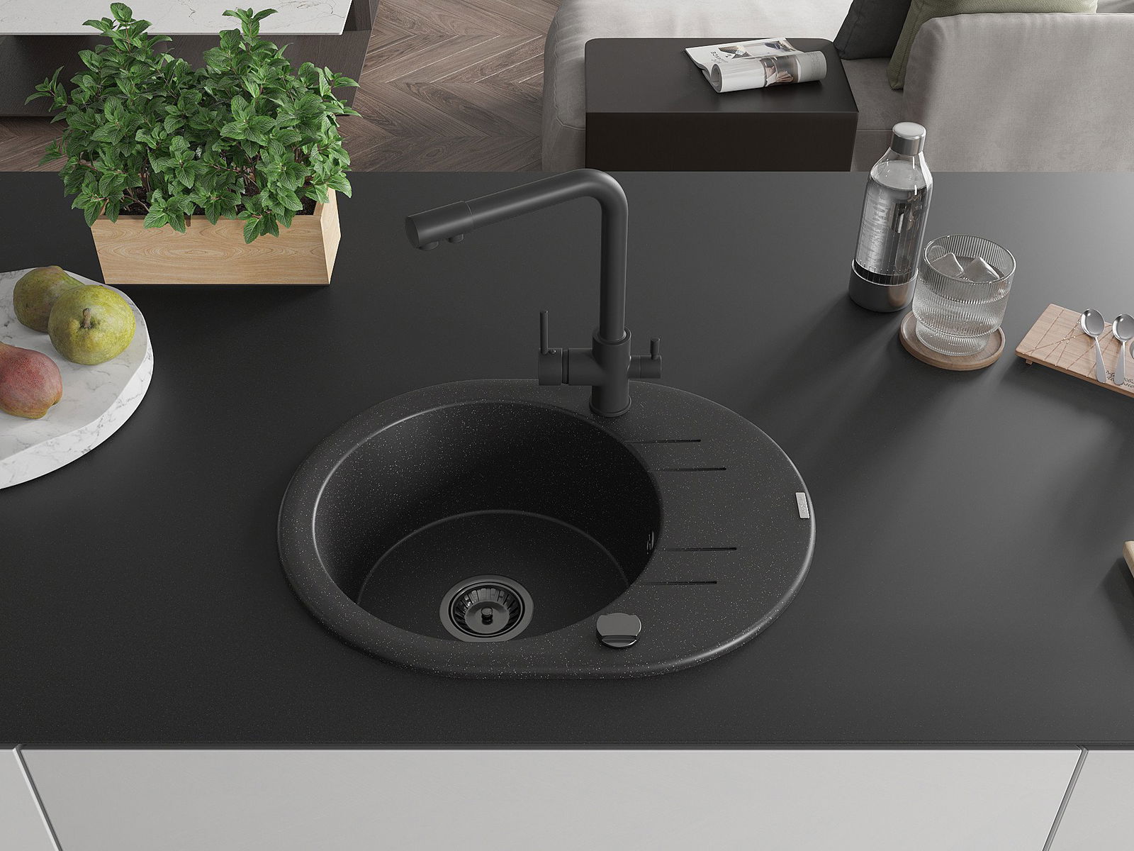 Il lavello è realizzato in granito di alta qualità. Rappresenta un complemento elegante e, soprattutto, pratico per ogni cucina, indipendentemente dal suo stile. L'alta qualità e la durata del granito garantiscono un utilizzo che dura per molti anni.
