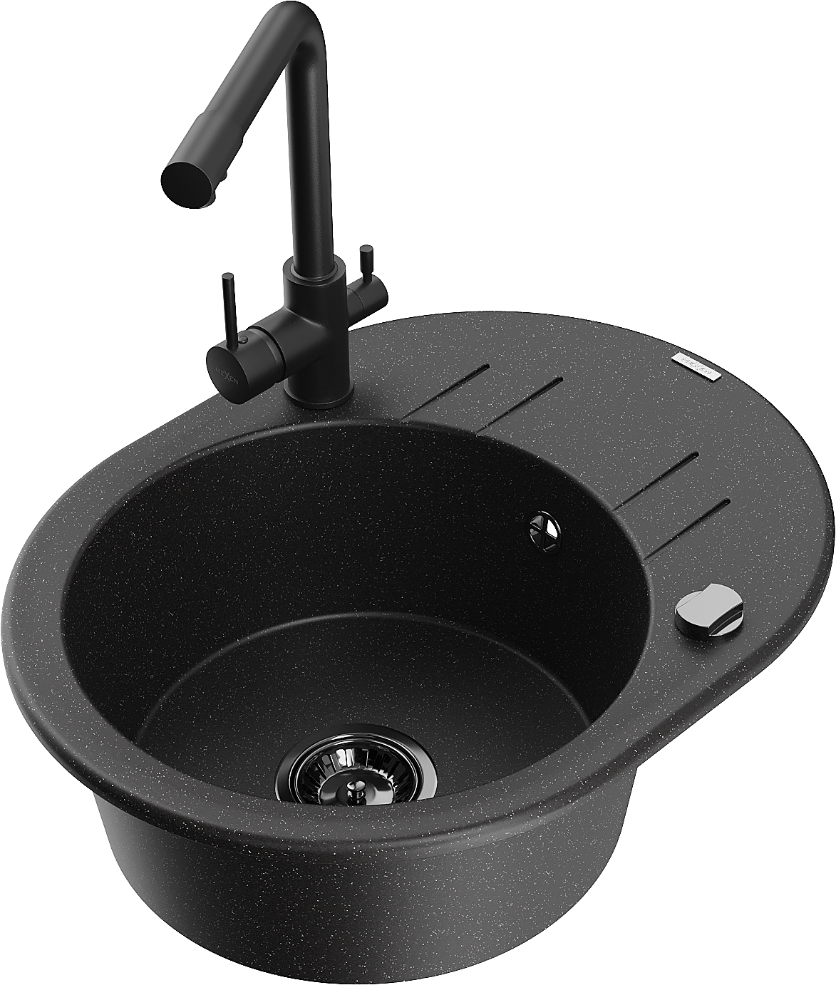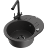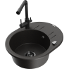 Mexen Kevin lavello da cucina in granito a 1 vasca con scolapiatti e rubinetto Duero, nero/argento metallizzato