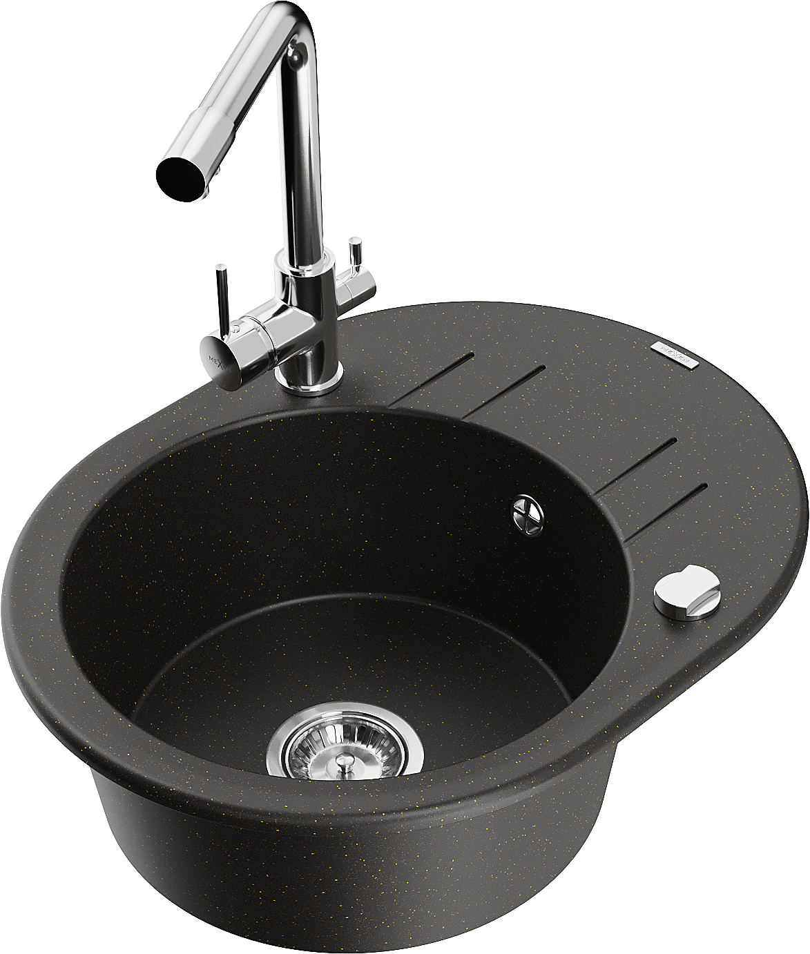 Mexen Kevin lavello in granito a 1 vasca con sgocciolatoio e rubinetto da cucina Duero, nero/oro metallizzato