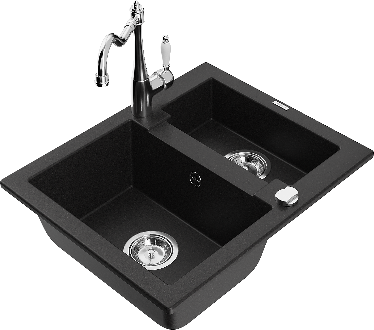 Mexen Carlos lavello in granito da 1,5 vasca con miscelatore da cucina Carla, nero - 6518-77-670700-00