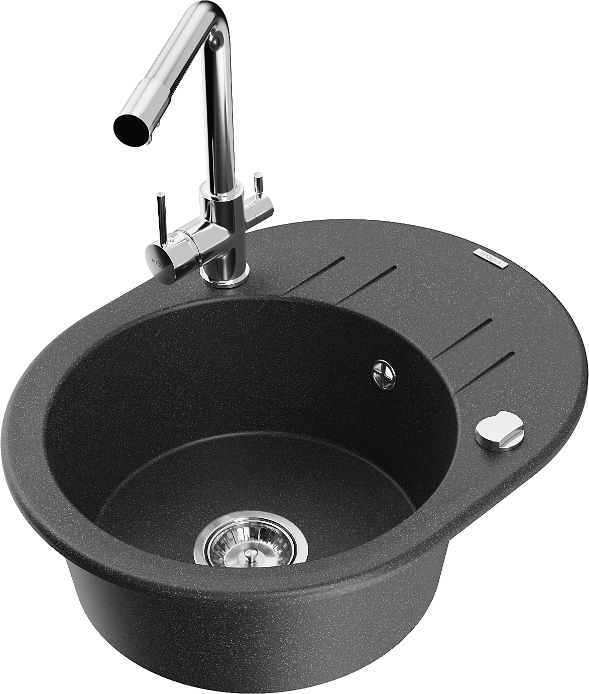Mexen Kevin lavello in granito 1-vasca con sgocciolatoio e rubinetto cucina Duero, nero punteggiato - 6517-76-671600-00