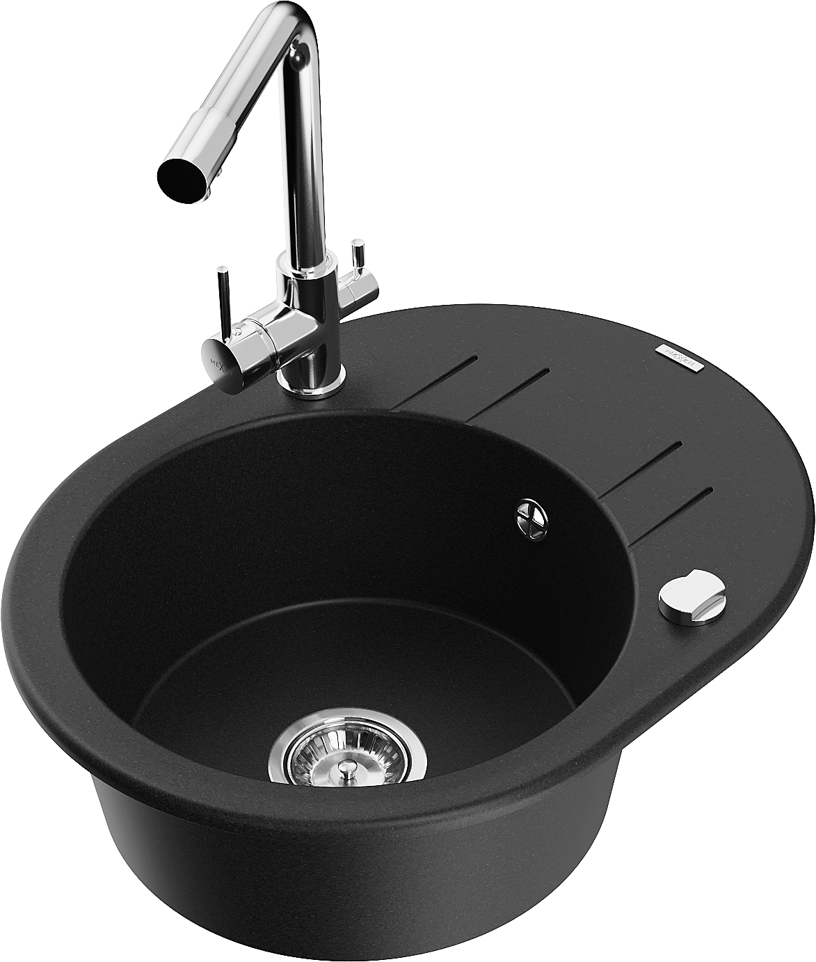Mexen Kevin lavello in granito a 1 vasca con gocciolatoio e miscelatore da cucina Duero, nero - 6517-77-671600-00