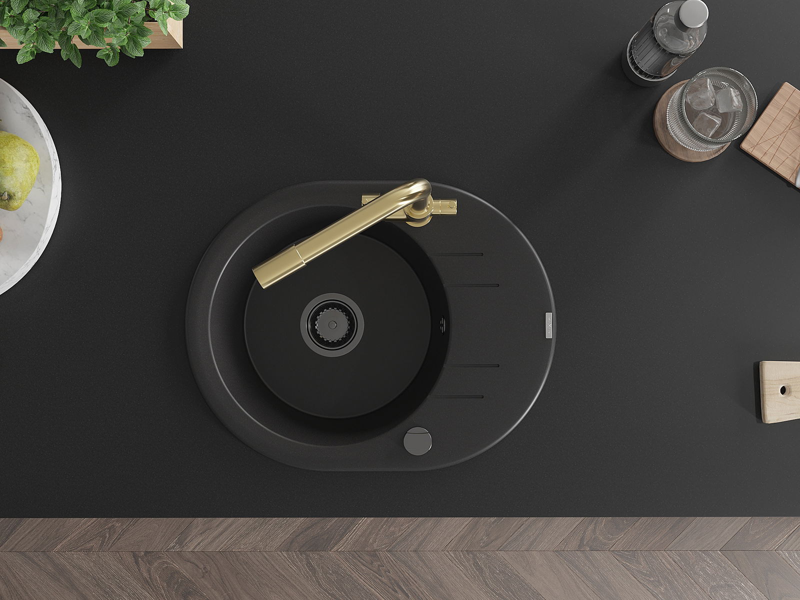 Mexen Kevin lavello in granito a 1 vasca con scolapiatti e rubinetto da cucina Duero, nero - 6517-77-671600-50-B