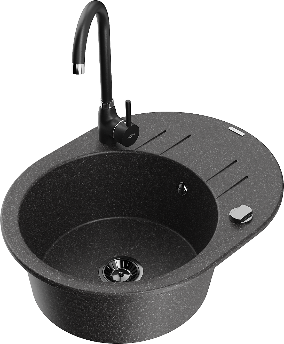 Mexen Kevin lavello in granito a 1 vasca con scolapiatti e rubinetto da cucina Telma, nero maculato - 6517-76-670200-70-B