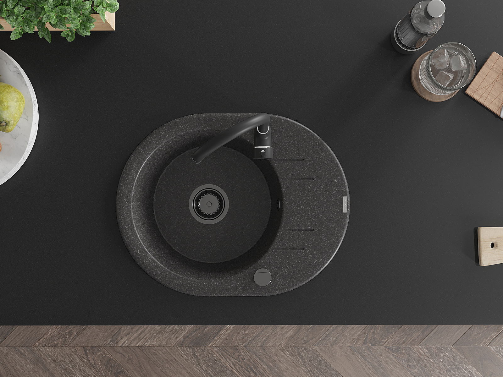 Il lavello è realizzato in granito di alta qualità. Rappresenta un complemento elegante e, soprattutto, pratico per ogni cucina, indipendentemente dal suo stile. L'alta qualità e la durata del granito garantiscono un utilizzo che dura per molti anni.