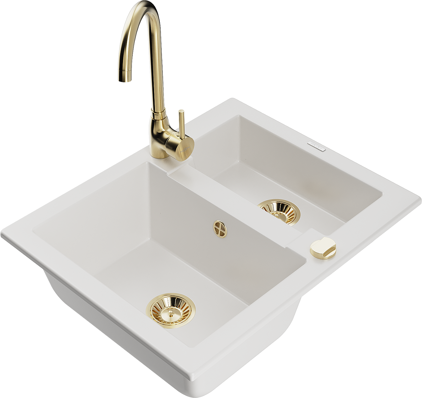 Mexen Carlos lavello in granito con 1,5 vasche e rubinetto da cucina Telma, bianco - 6518-20-670200-50