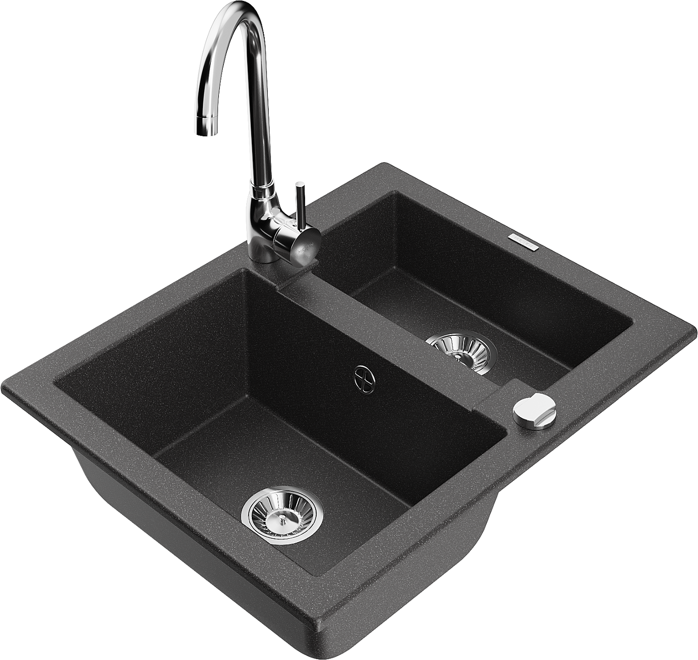 Mexen Carlos lavello in granito 1,5 vasca con miscelatore cucina Telma, nero maculato - 6518-76-670200-00
