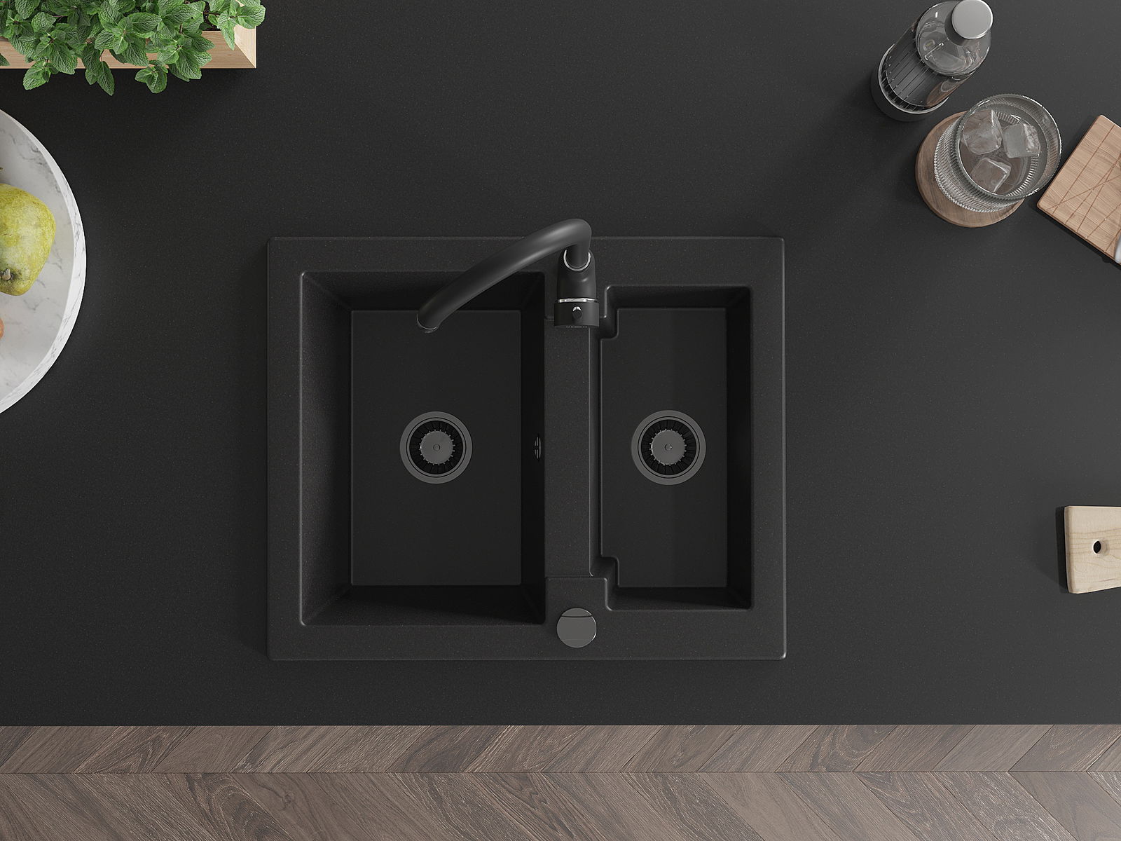 Il lavello è realizzato in granito di alta qualità. Rappresenta un complemento elegante e, soprattutto, pratico per ogni cucina, indipendentemente dal suo stile. L'alta qualità e la durata del granito garantiscono un utilizzo che dura per molti anni.