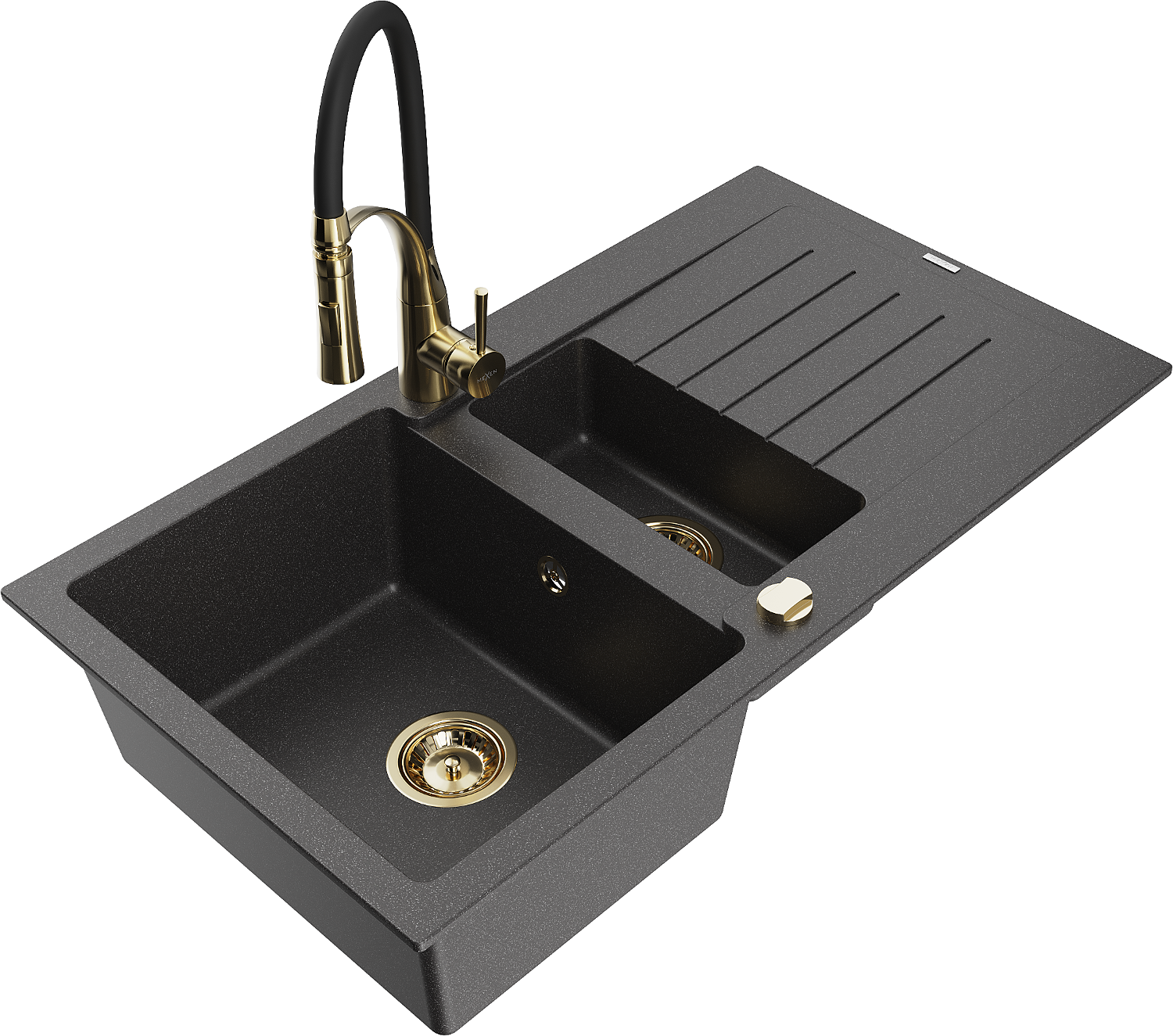 Mexen Matias lavello in granito 1,5 vasca con scolapiatti e miscelatore cucina Aster, nero maculato - 6502-76-73450-57-G