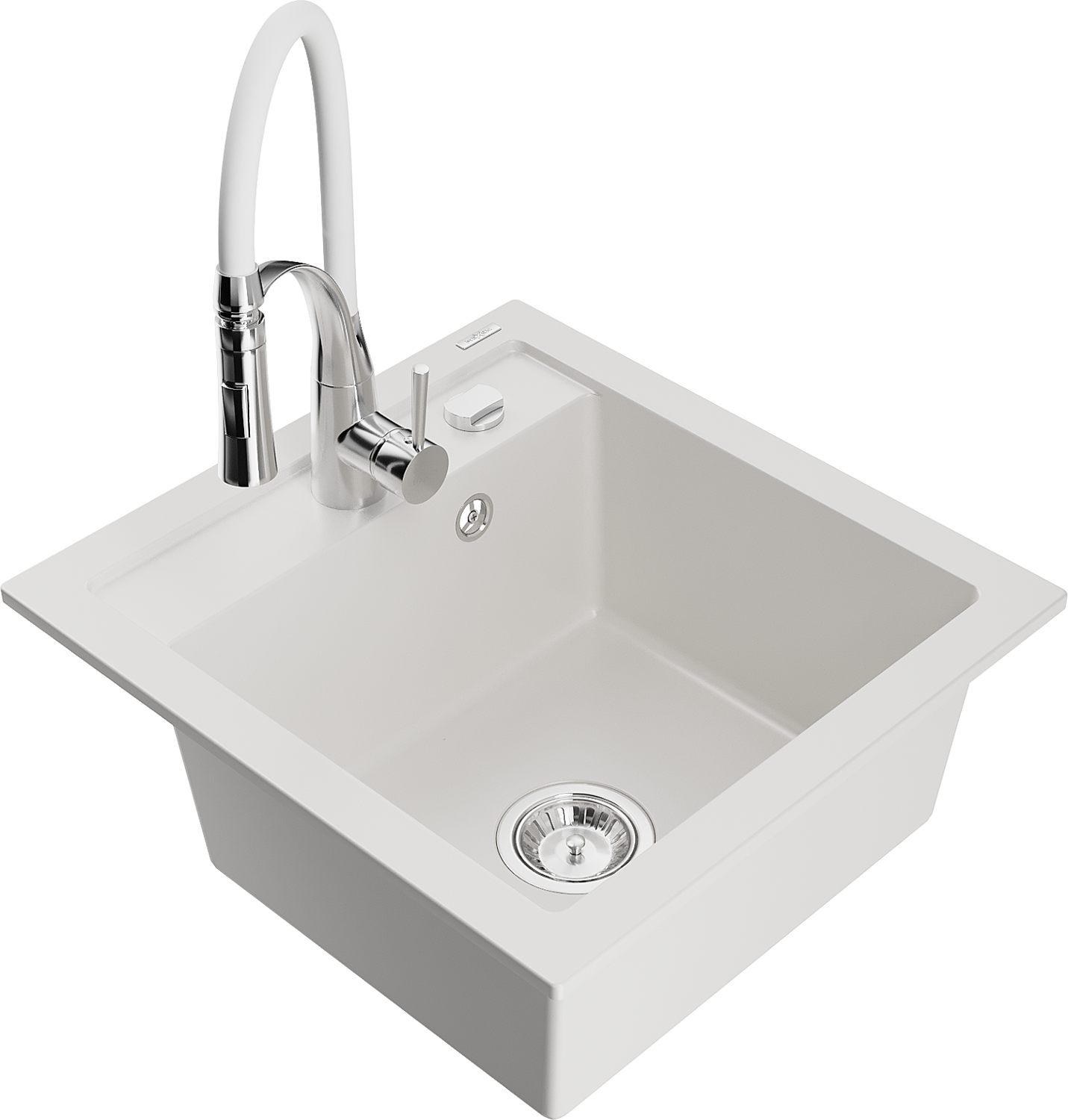 Mexen Vito lavello in granito a 1 vasca con rubinetto da cucina Aster, bianco - 6503-20-73450-02