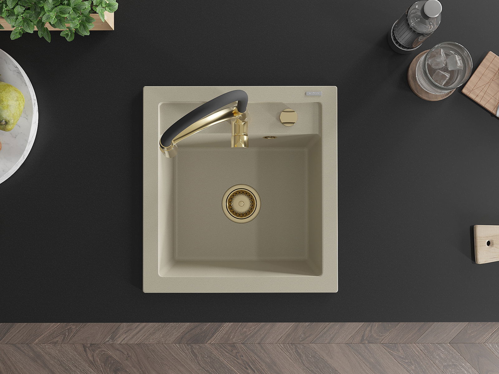Mexen Vito lavello da cucina in granito 1-vasca con miscelatore da cucina Aster, beige - 6503-69-73450-57-G