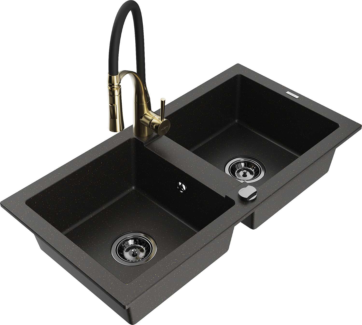Mexen Mario lavello in granito a 2 vasche con miscelatore da cucina Aster, nero/oro metallizzato - 6504-75-73450-57-B