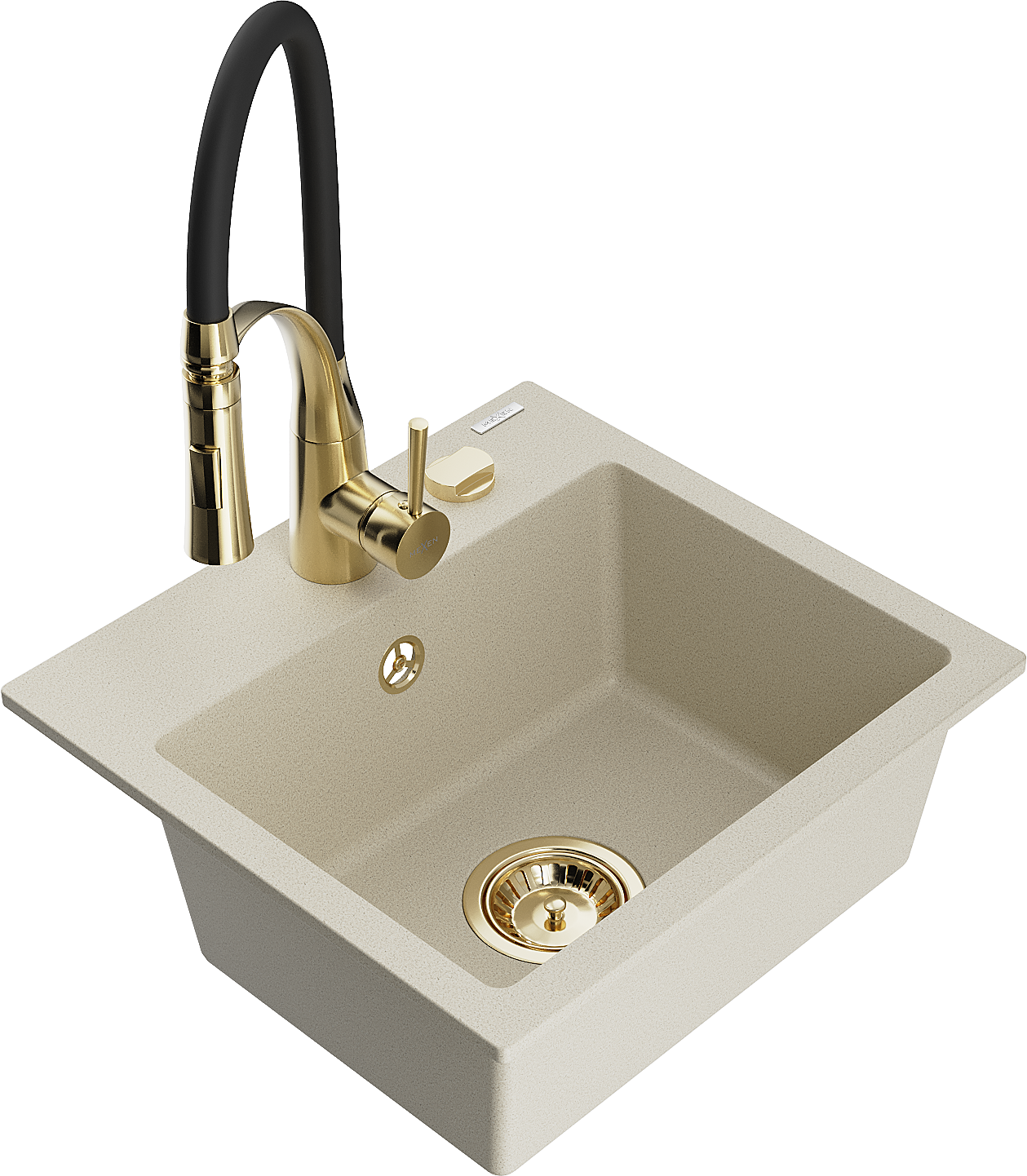 Mexen Milo lavello in granito a 1 vasca con miscelatore da cucina Aster, beige - 6505-69-73450-57-G