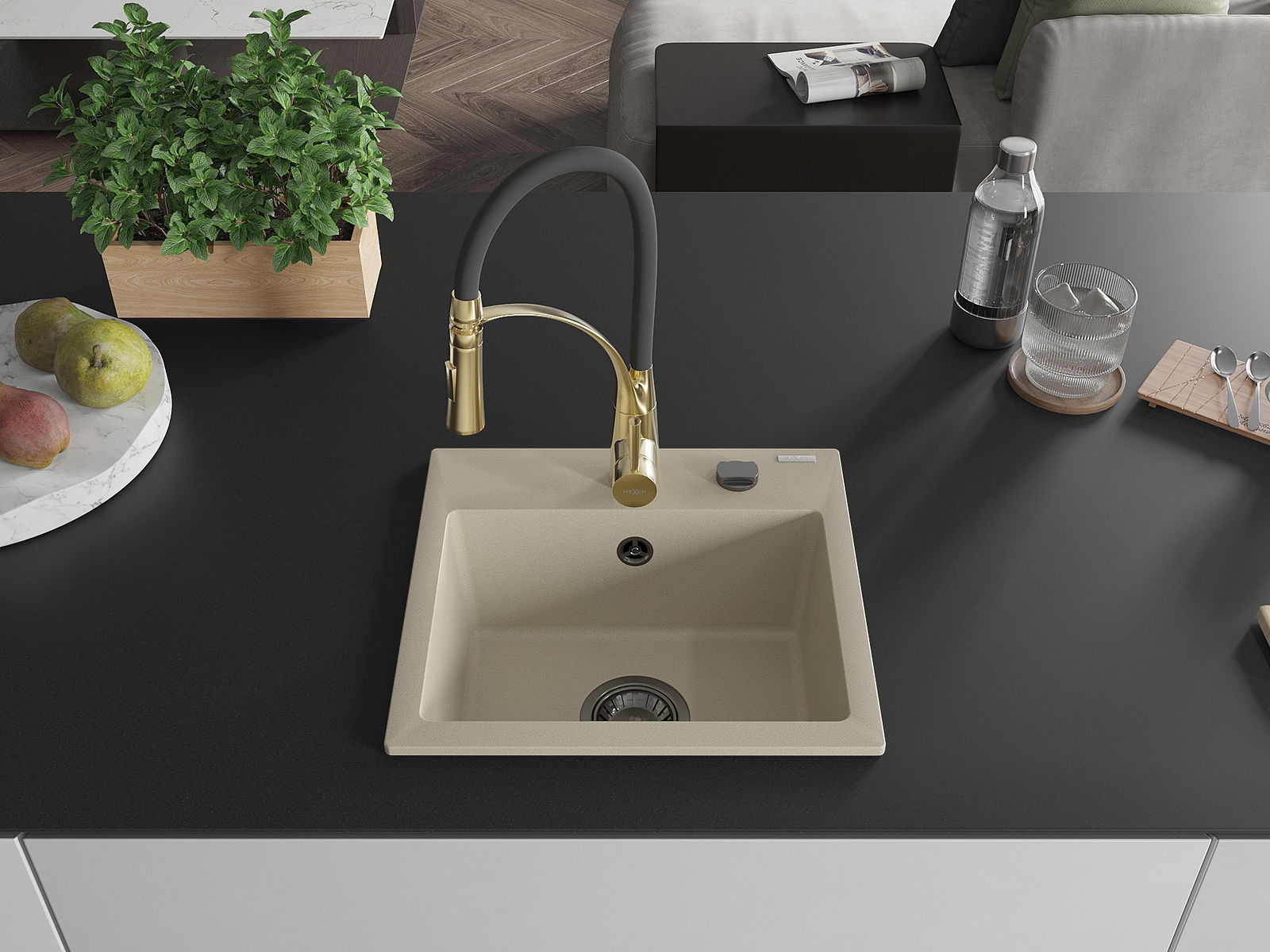 Mexen Milo lavello in granito a 1 vasca con miscelatore cucina Aster, beige - 6505-69-73450-57-B