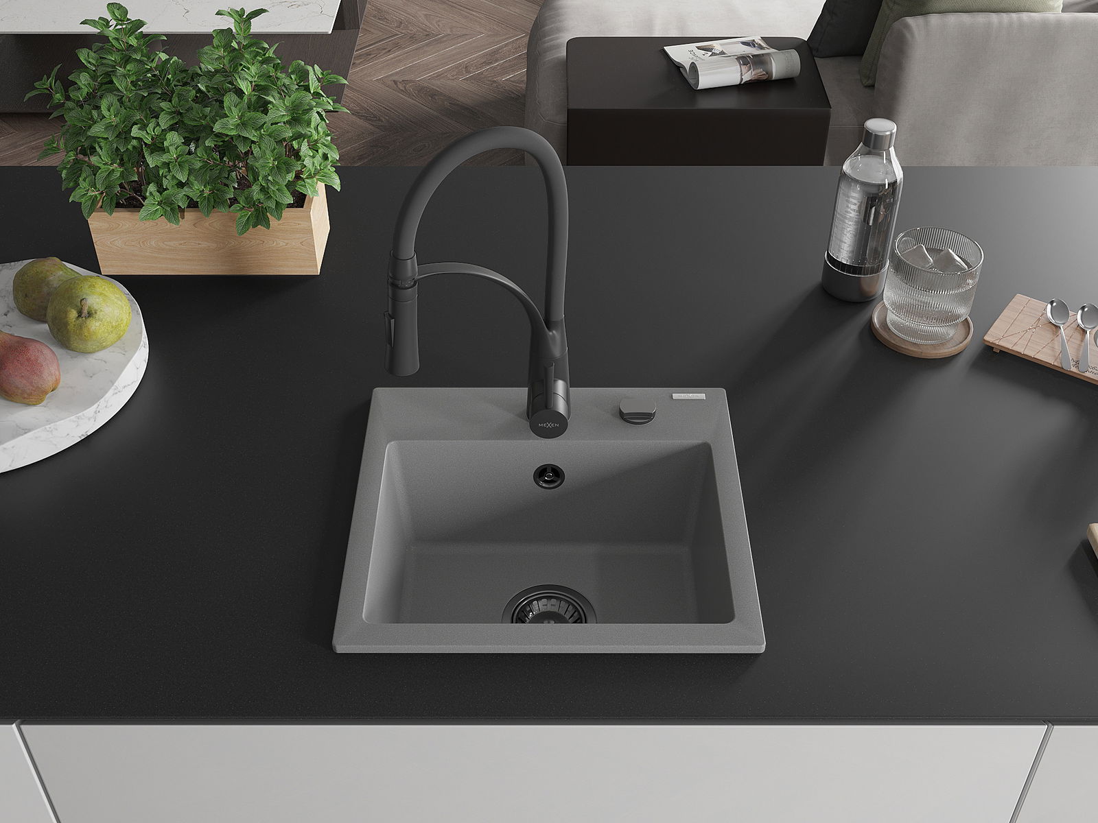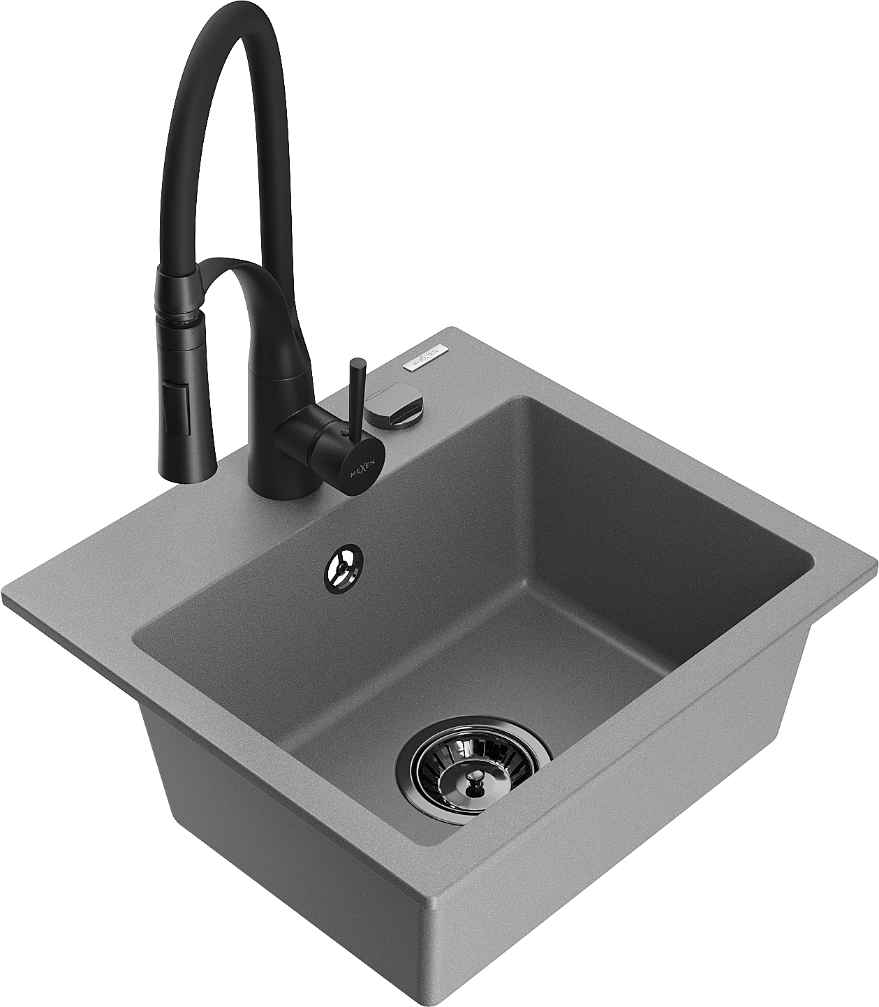 Mexen Milo lavabo cucina in granito a 1 vasca con rubinetto Aster, grigio - 6505-71-73450-70-B
