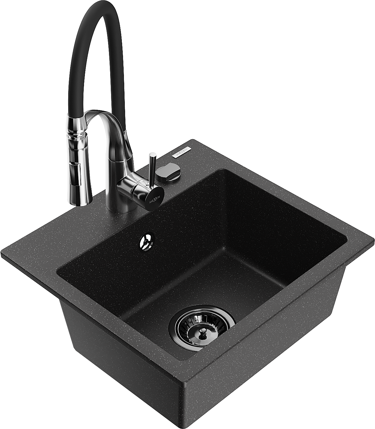 Mexen Milo lavello in granito a 1 vasca con miscelatore da cucina Aster, nero/metallo argento - 6505-73-73450-07-B