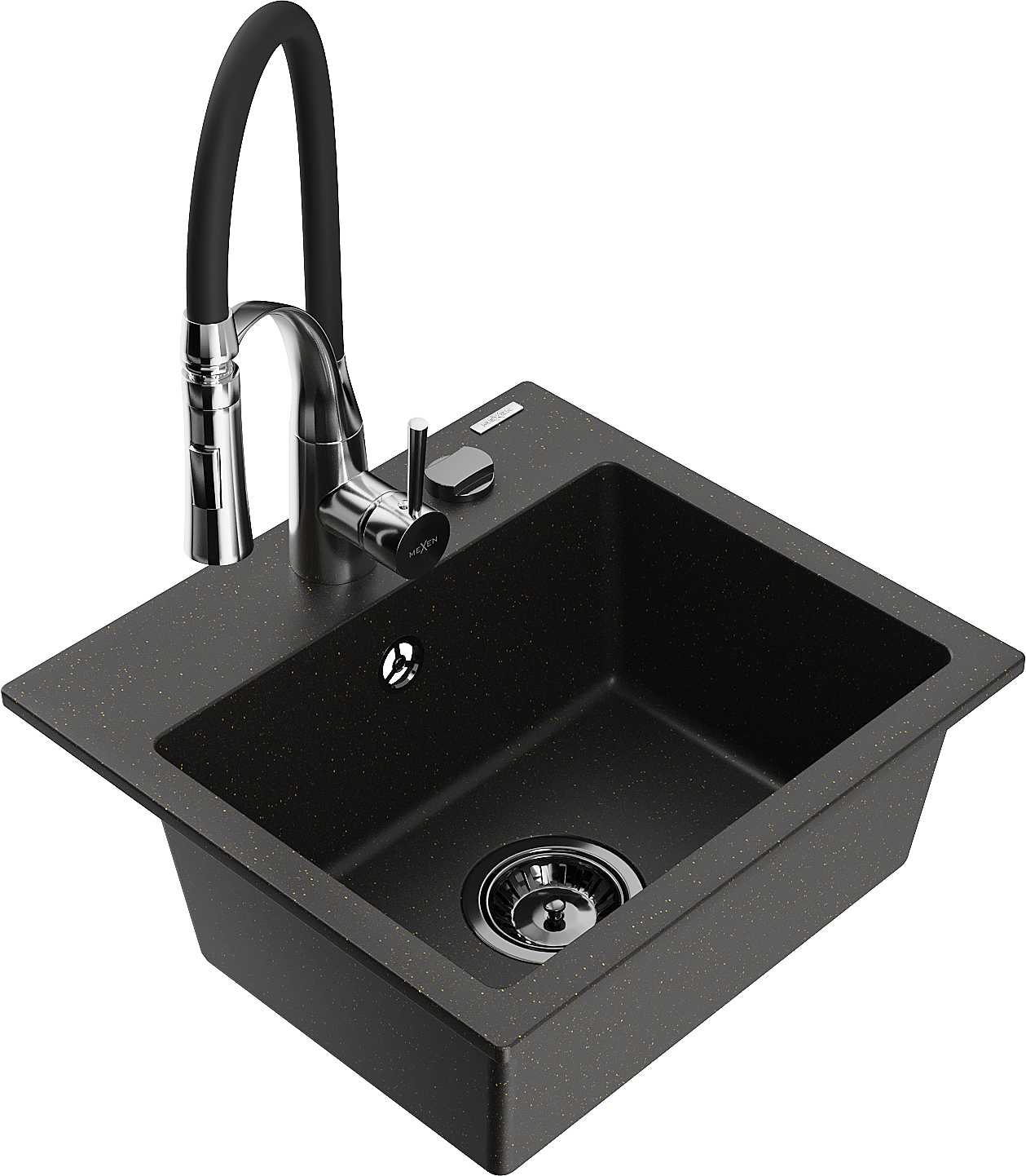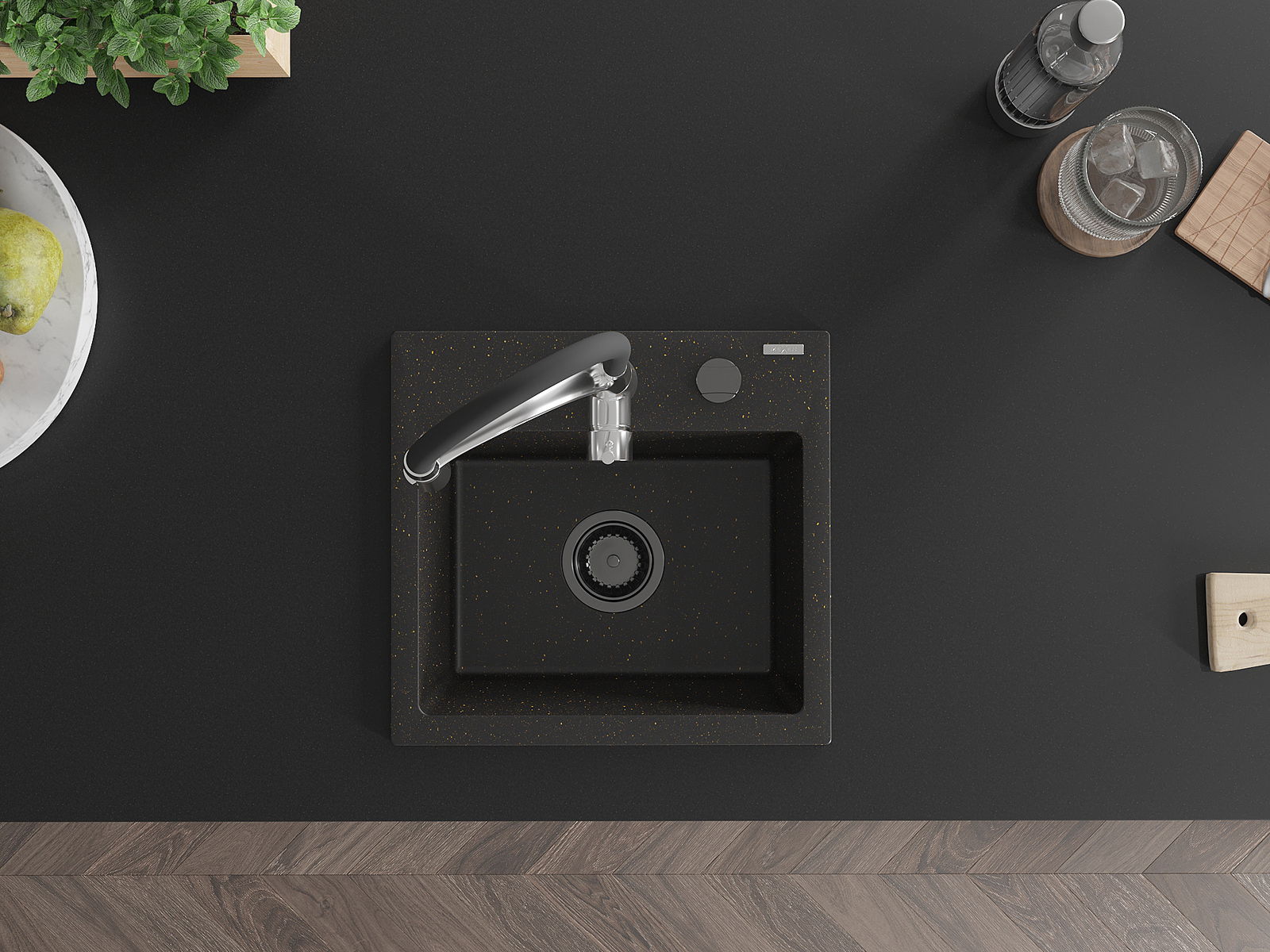 Mexen Milo lavello in granito a 1 vasca con miscelatore da cucina Aster, nero/oro metallico - 6505-75-73450-07-B