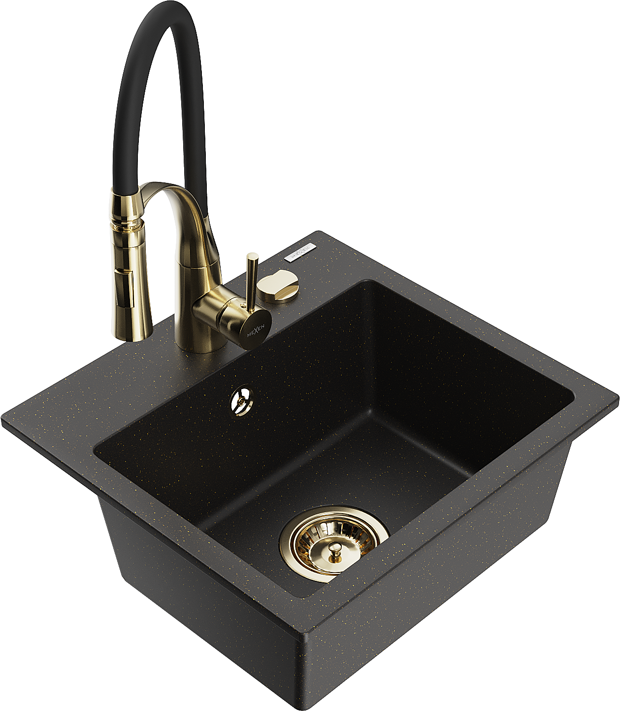 Mexen Milo lavello in granito 1-vasca con rubinetto da cucina Aster, nero/oro metallico - 6505-75-73450-57-G