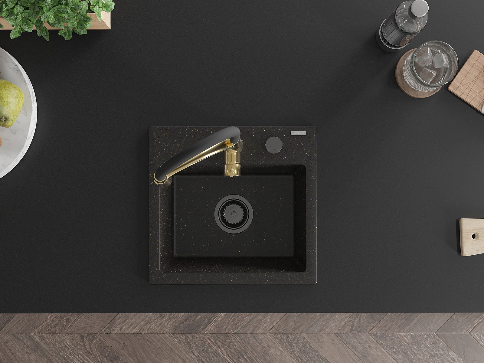 Mexen Milo lavello in granito a 1 vasca con miscelatore da cucina Aster, nero/oro metallico - 6505-75-73450-57-B