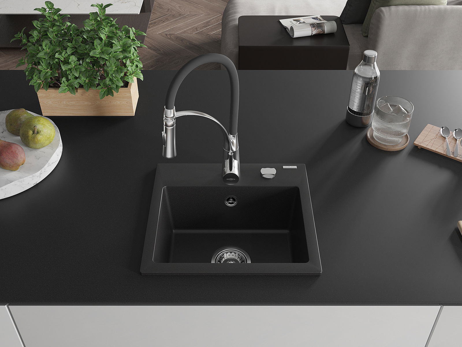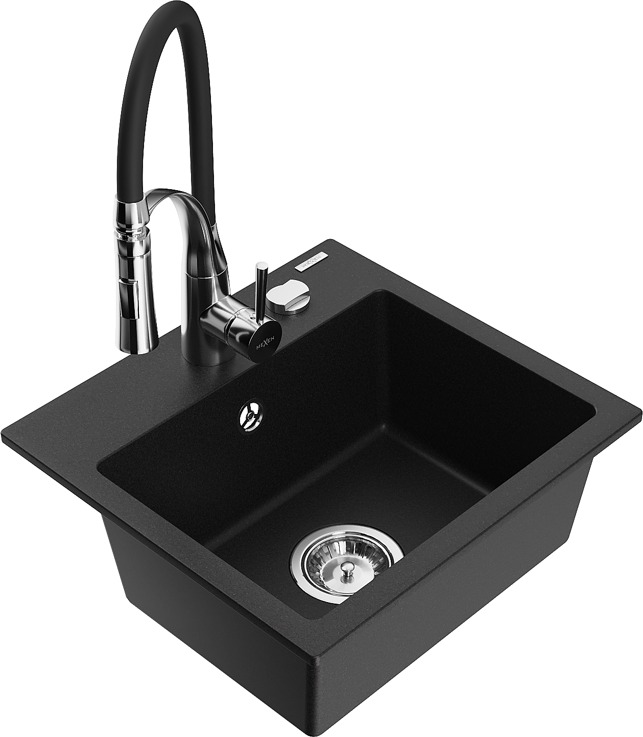 Mexen Milo lavello in granito a 1 vasca con miscelatore da cucina Aster, nero - 6505-77-73450-07