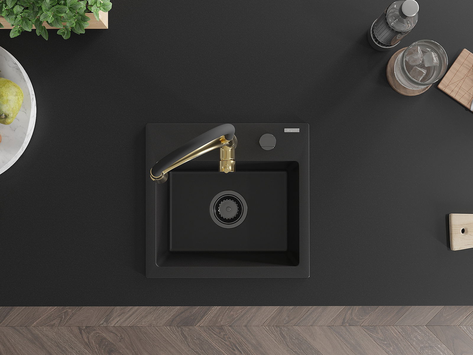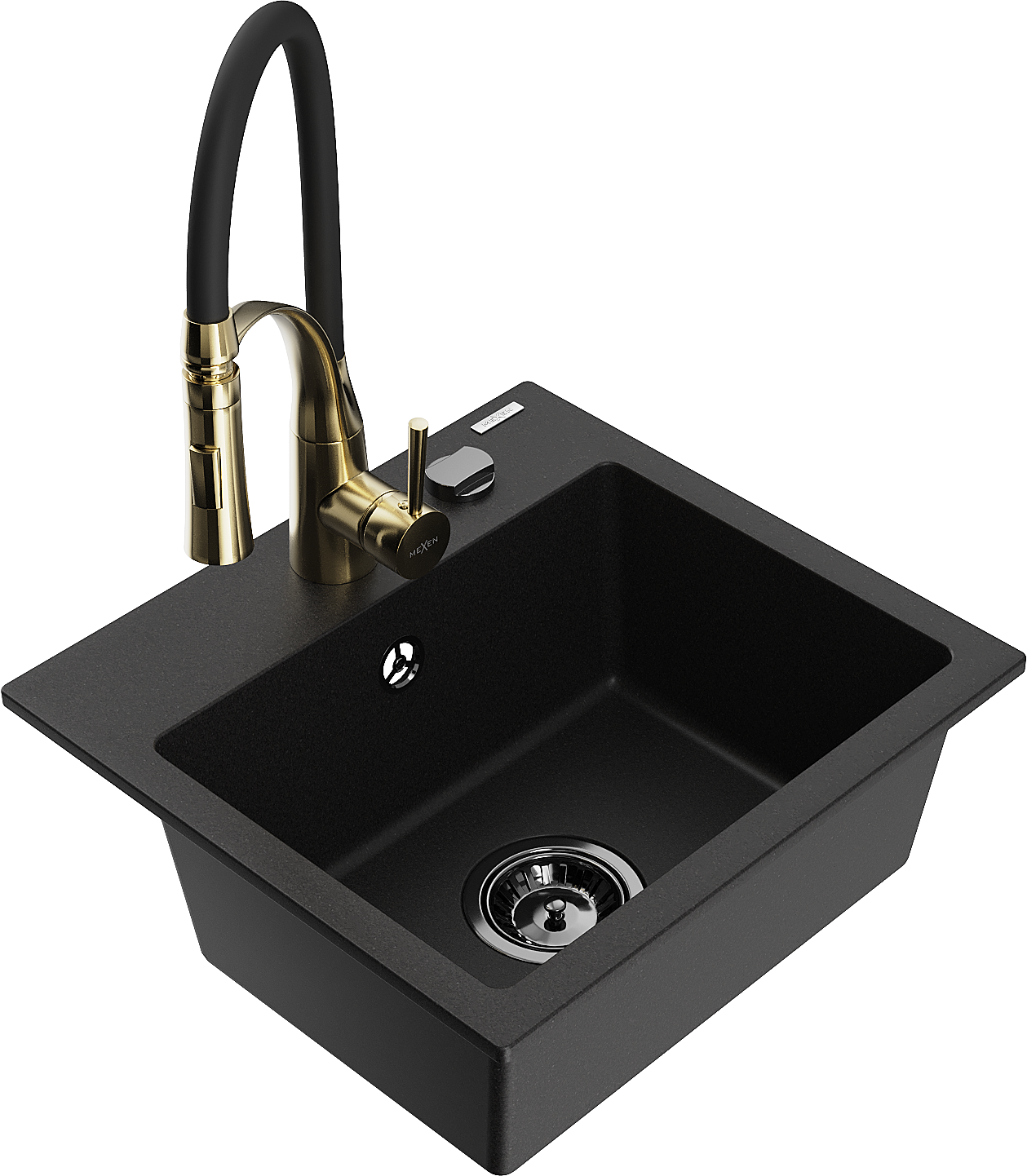 Mexen Milo lavello in granito a 1 vasca con rubinetto da cucina Aster, nero - 6505-77-73450-57-B