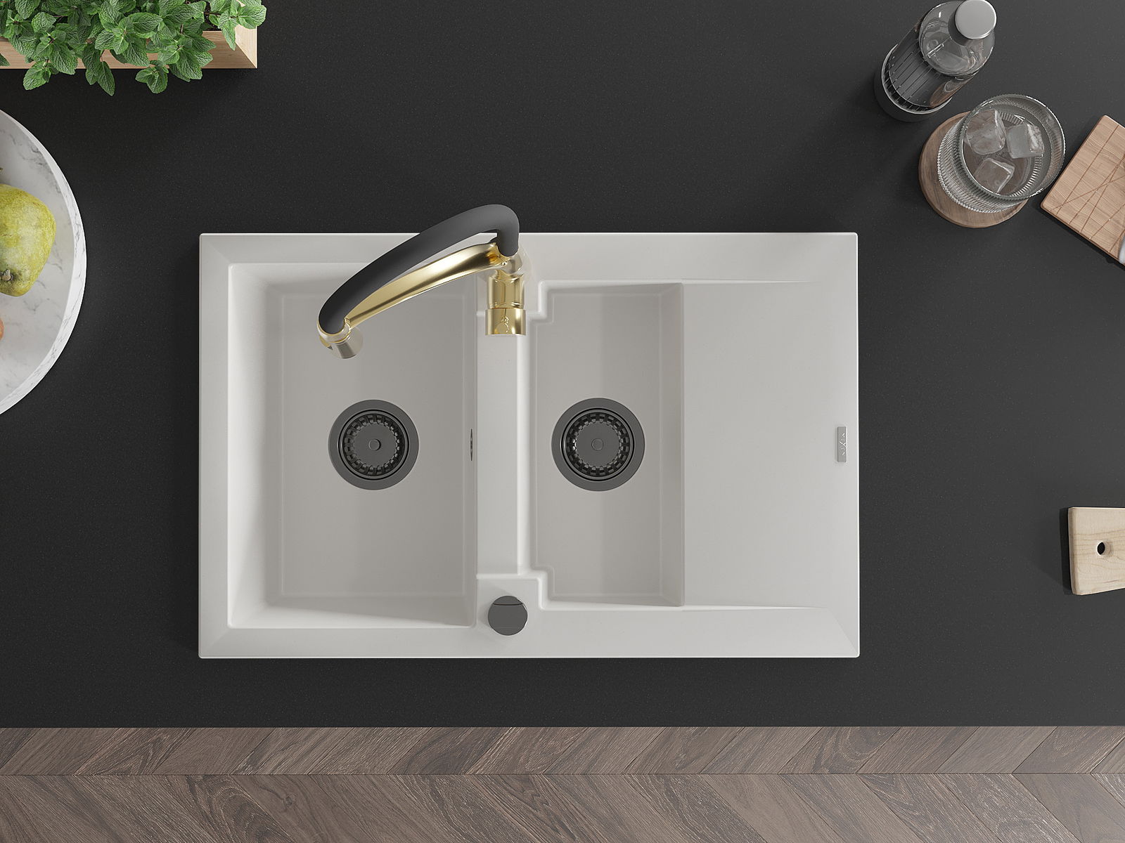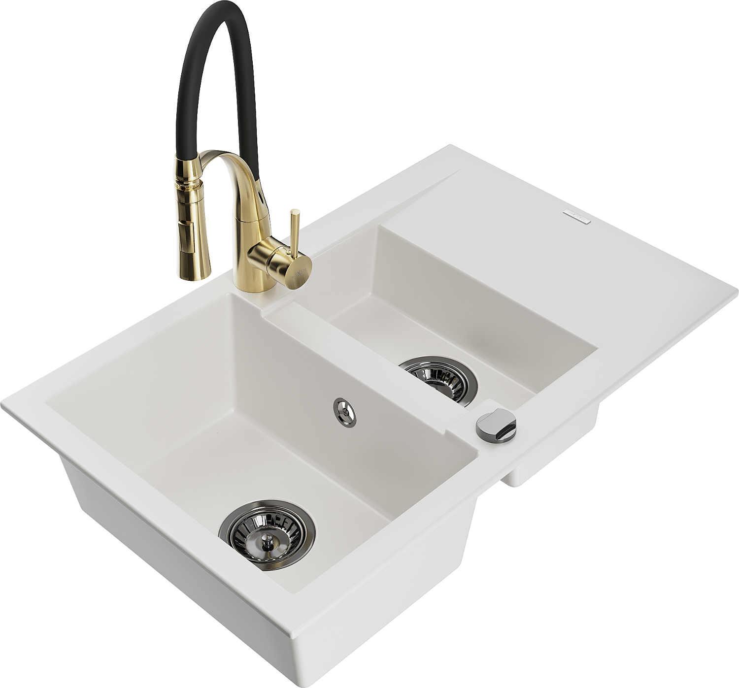 Mexen Gaspar lavello in granito 1,5 bacino con scolapiatti e rubinetto da cucina Aster, bianco - 6507-20-73450-57-B