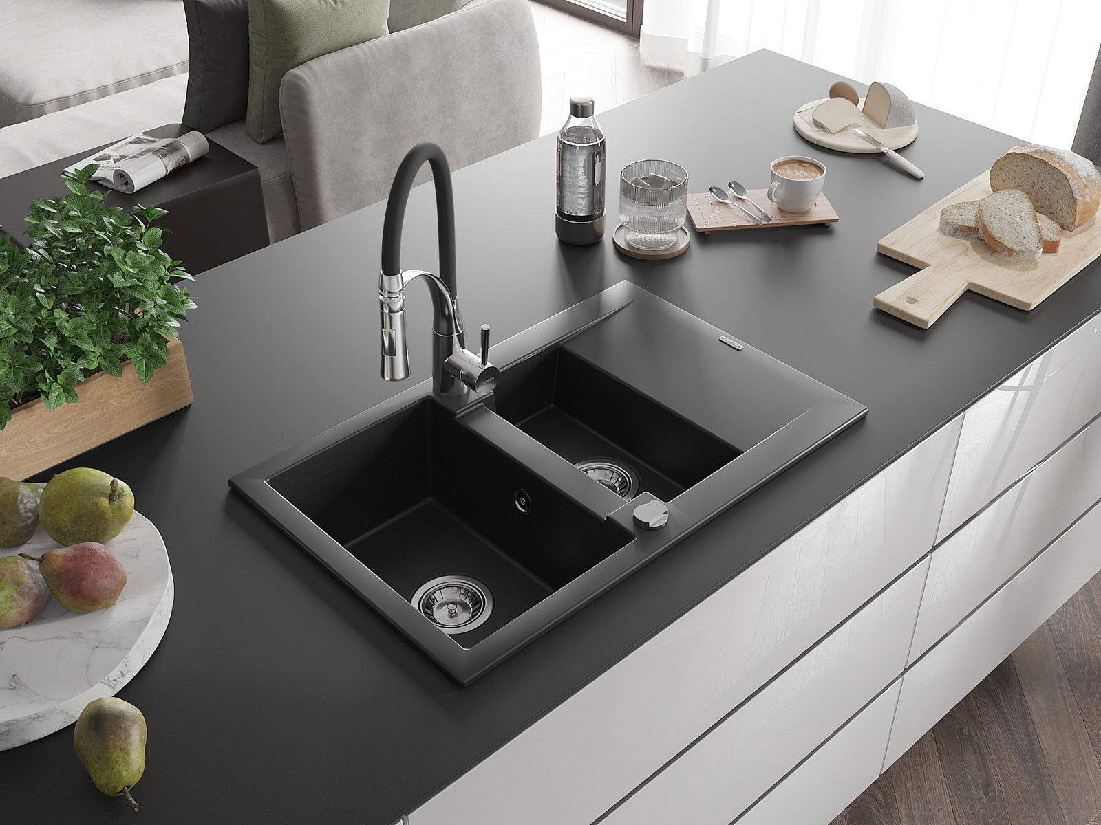 Il lavello è realizzato in granito di alta qualità. Rappresenta un complemento elegante e, soprattutto, pratico per ogni cucina, indipendentemente dal suo stile. L'alta qualità e la durata del granito garantiscono un utilizzo che dura per molti anni.