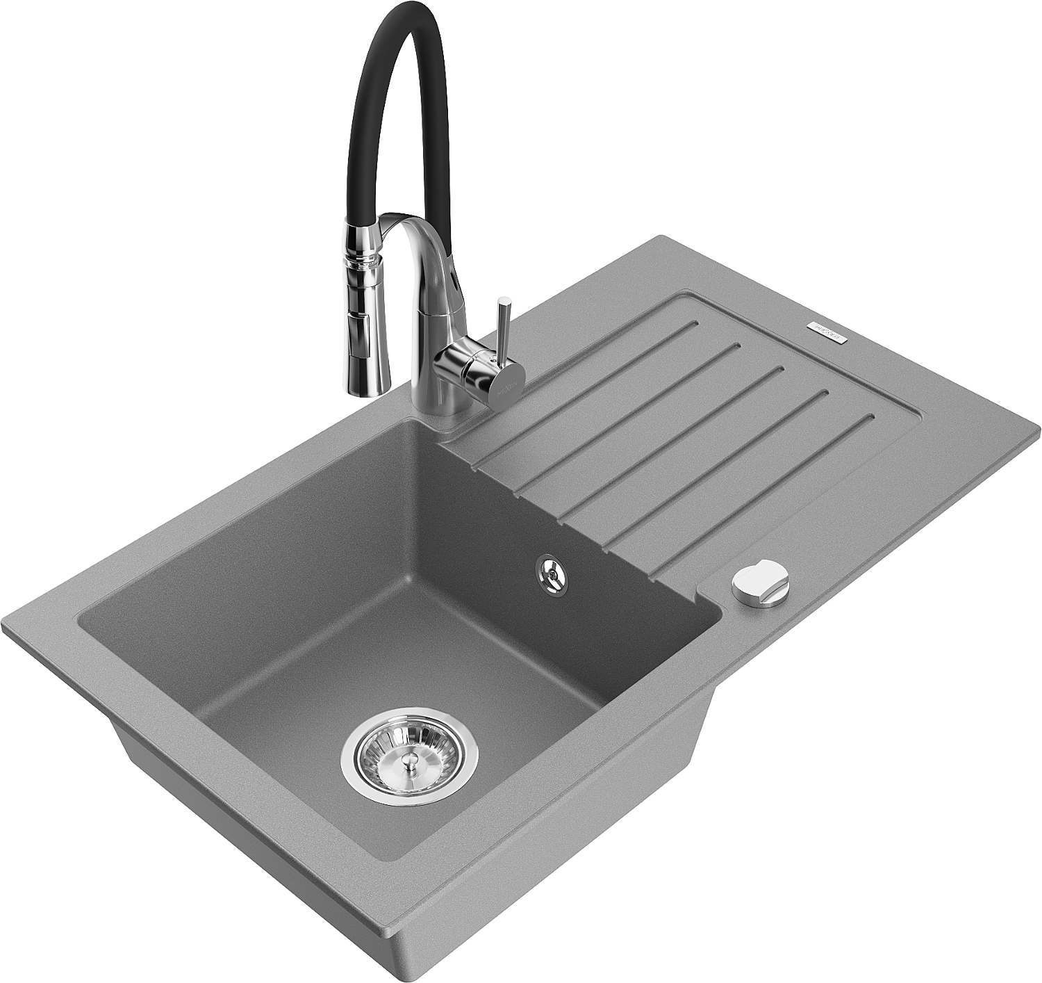 Mexen Pablo lavello in granito a 1 vasca con scolapiatti e rubinetto da cucina Aster, grigio - 6510-71-73450-07