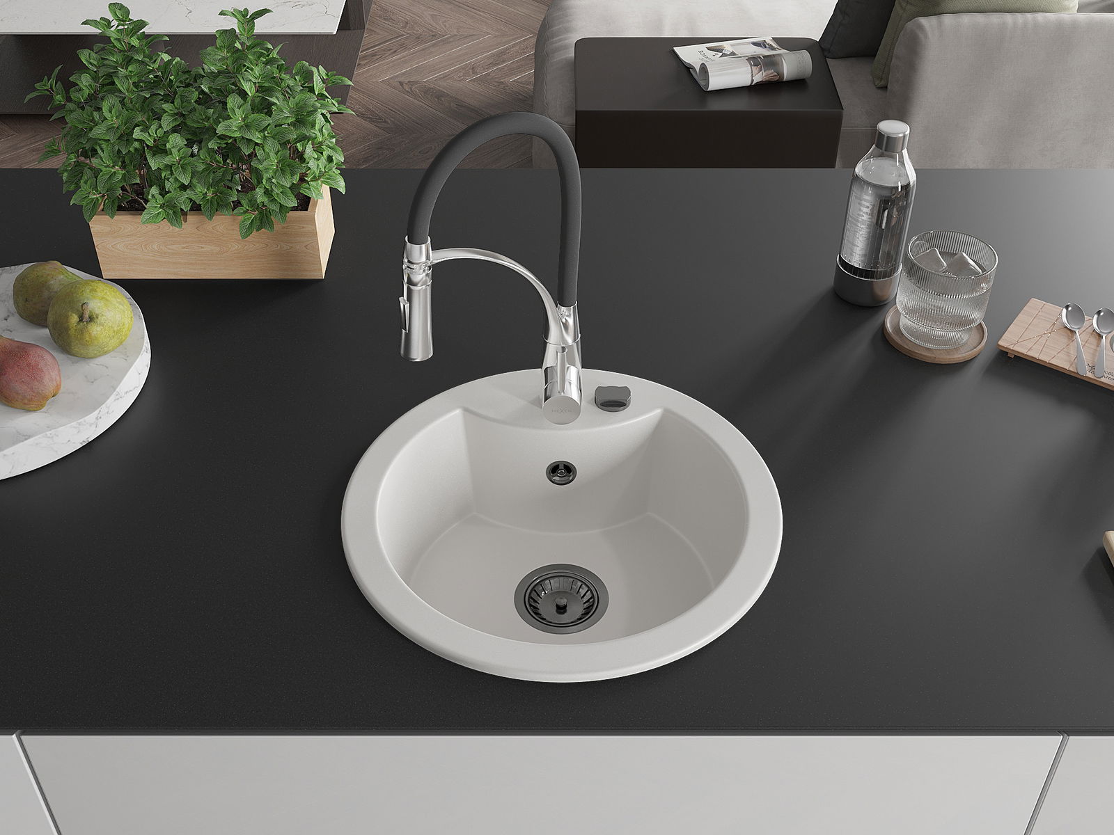 Il lavello è realizzato in granito di alta qualità. Rappresenta un complemento elegante e, soprattutto, pratico per ogni cucina, indipendentemente dal suo stile. L'alta qualità e la durata del granito garantiscono un utilizzo che dura per molti anni.