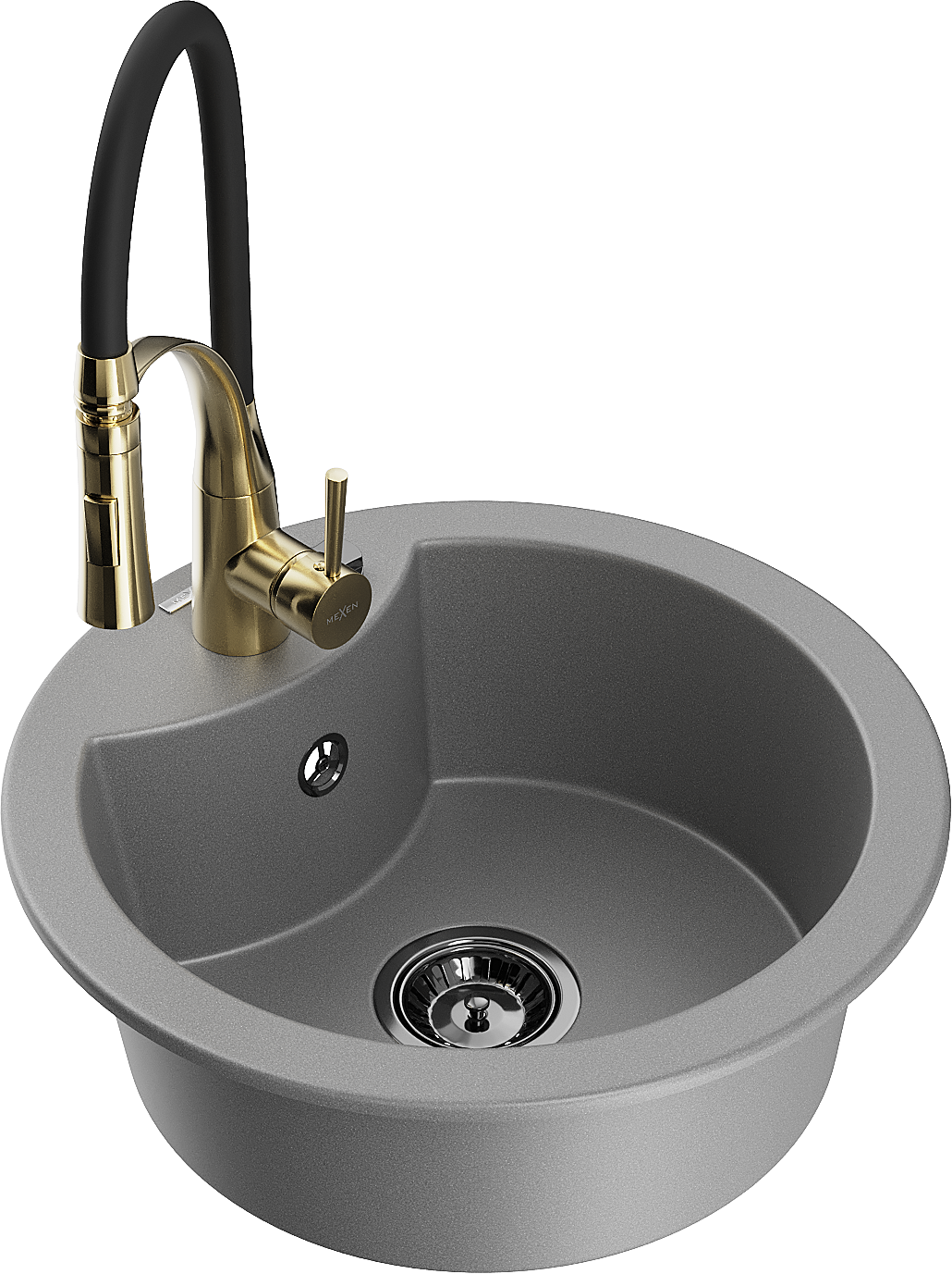 Mexen Diego lavello in granito 1-vasca con rubinetto da cucina Aster, grigio - 6512-71-73450-57-B